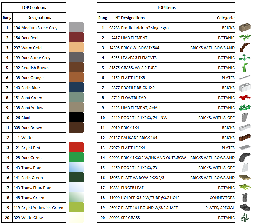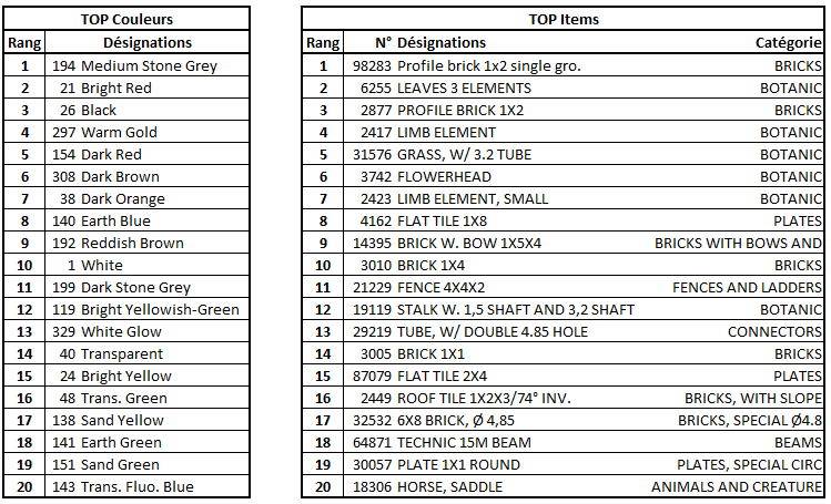Et les briques disponibles ICI (Attention gros fichier Excel petite config s'abstenir vous pouvez utiliser Bricklink pour communiquer l'Item N°)