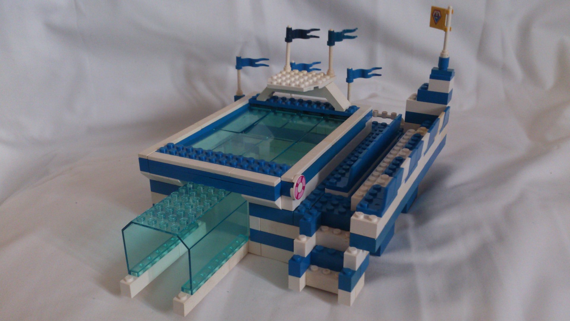 " l'assemblage de plate et tile transparente ou trans blue ": Si j'en ai 10 (1x4), c'est le bout du monde...donc pour faire la surface complète, faudrait investir, et c pas si facile à trouver à bon prix.