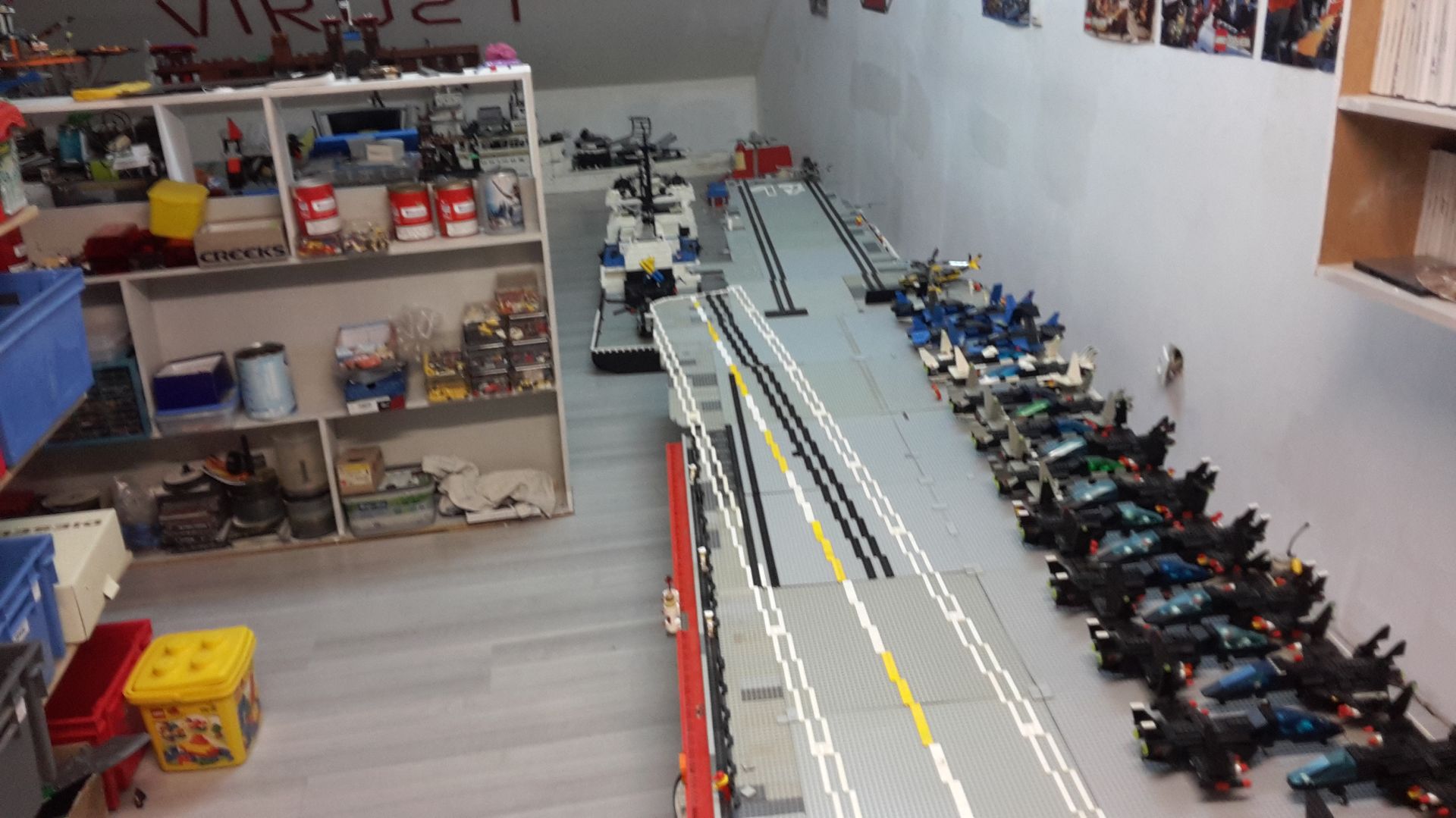 porte avion coque toute rouge et leu reste 1 m en blanc a enlever commencer les tiles sur pont d envol interieur presque terminer
