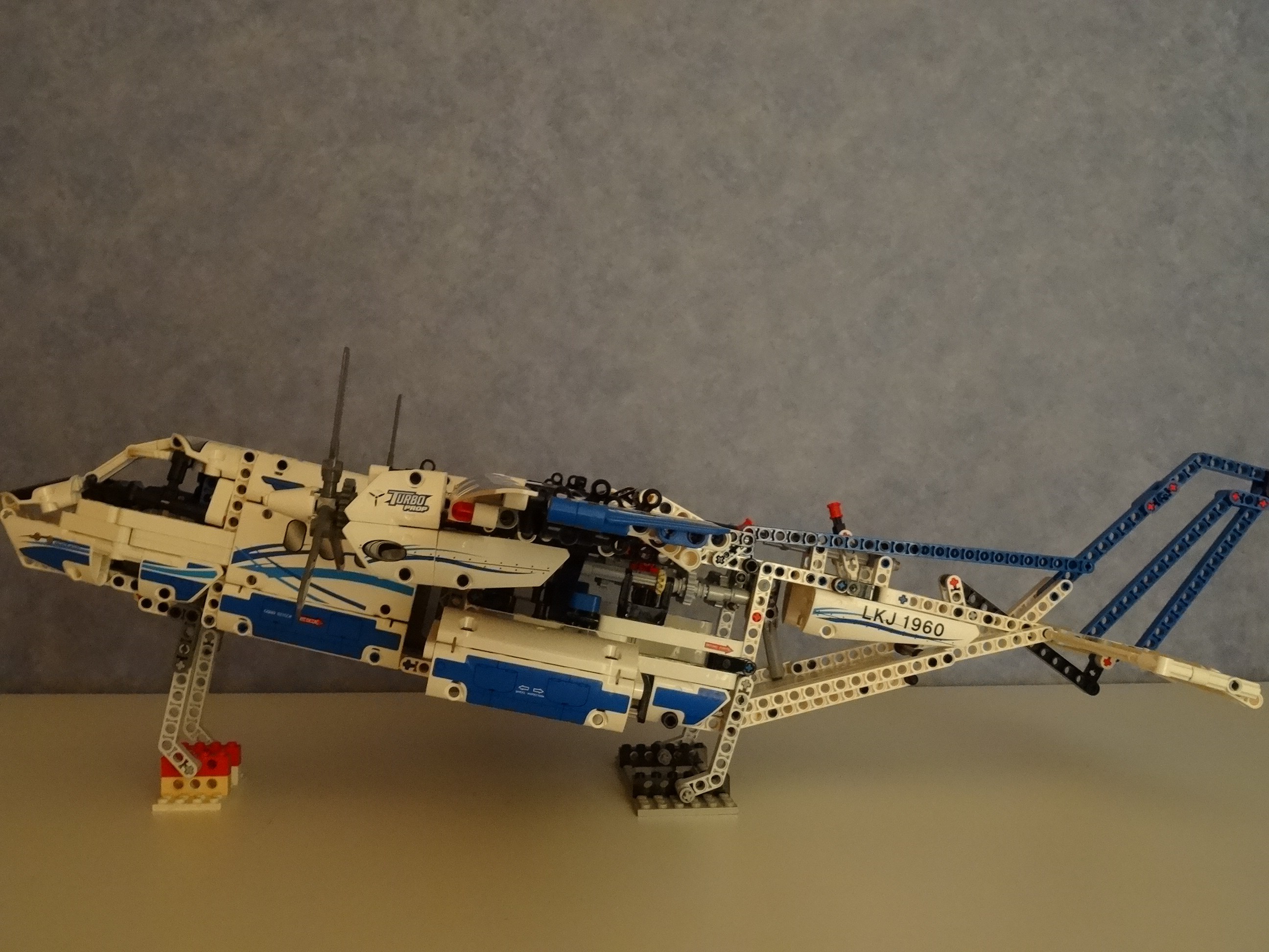 Il est plus qu'un simple modèle car il est équipé de nombreuses fonctions réalistes pour l'aider à faire son travail. Bouge le levier de commande et regarde les volets, les élévateurs et les ailerons bouger, puis active les moteurs LEGO® Power Functions pour ouvrir les compartiments cargo avant et arrière, rentre le train d'atterrissage et fais tourner les hélices.