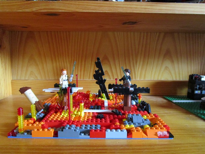 Cette scène représente le moment où Obiyane Kenobie et Anaking Scalwoker se combattent (dans STAR WARS épisode III )