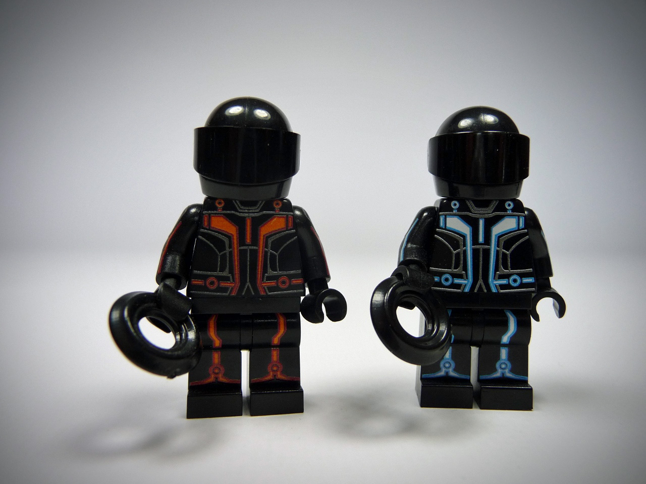 J'ouvre le bal avec un binôme que j'aime bien issu de Tron. Mes 2 premières minifigs customs. 2 belles minifigs avec Backprint et Print sur les bras. Le disque est également custom.