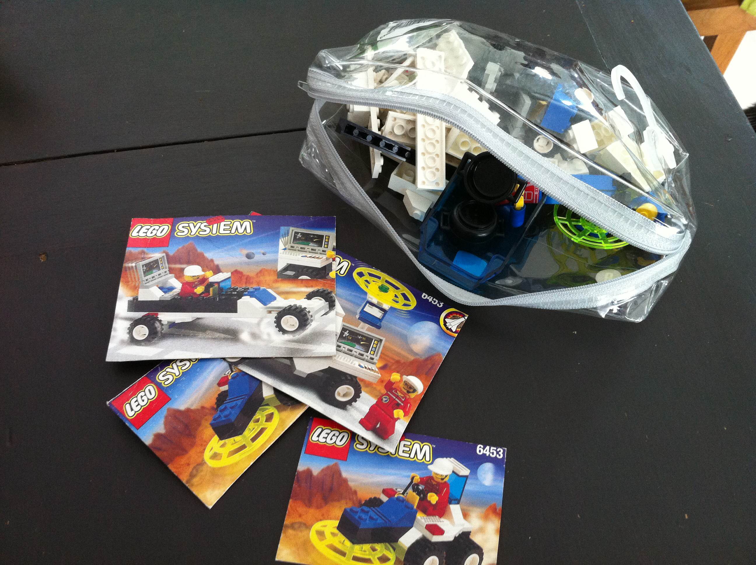 J'attend qu'ils sortent de derrière le stand puis jete un coup d'oeil dans le sac, un mélange playmo et LEGO,