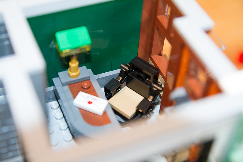 5 sachets pour cette étape ! Ici, on va s'attaquer au premier étage de la banque, qui est plutôt conçu comme une mezzanine. On trouvera un bureau avec machine à café (on m'a jamais offert le café dans ma banque... faudra que j'en parle) puis le bureau du directeur, une foule de détails viennent compléter les bureaux, tampons encreur, machine à café donc, très très bien conçu cela dit en passant, dans le bureau secondaire on va construire une cheminée, c'est par celle ci que le voleur pénétrera dans la banque.... très bien pensée aussi, ca se monte sans lassitude. Pour moi le seul bémol, c'est que le foyer de la cheminée soit coté petit bureau d'accueil plutôt que coté bureau du directeur...