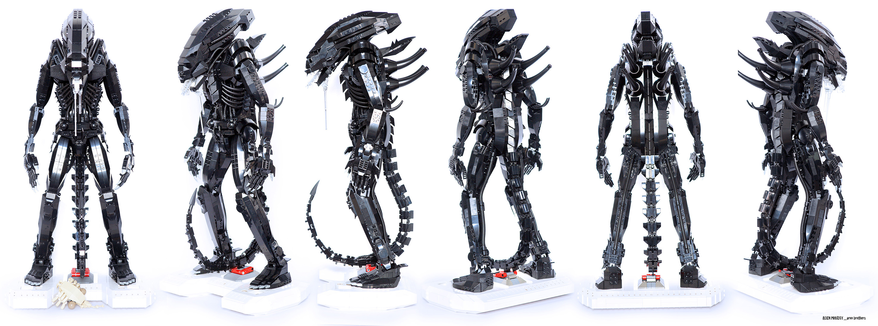 Ils ont déterminé la taille du modèle en partant de la tête du Xénomorphe. La taille réelle est 90cm de long, en travaillant sur les pièces utilisables pour reproduire la courbe du crâne, ils sont arrivés à une taille de 19cm, soit un ration de 0,21 (qu'ils ont plus ou moins appliqué sur le reste du modèle).