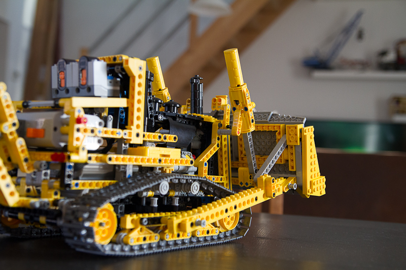 Montage des bras qui vont soutenir la lame, avec mise en place de vérins factices, la lame est bien réussi, elle en impose aussi, on aurait presque envie d'aller la tester dans la neige... donc je vais devoir déménager mes gens, désolé, ne pleurez pas tout ca tout ca... :D bonjesors puis montage de la griffe, de bonnes astuces de montage en technic, ca y est... on est prêt, les piles sont enclenchées... passons au test !!!!!