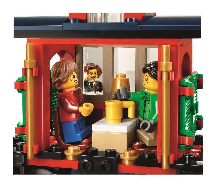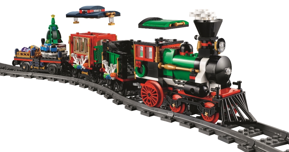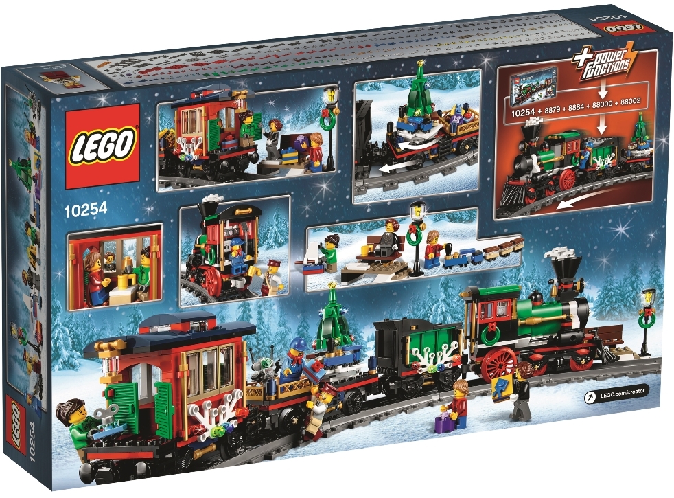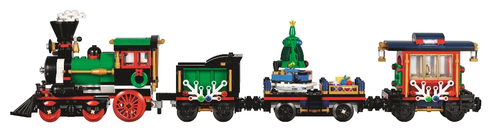 Participez en famille à une fête amusante grâce à ce charmant train LEGO® et son circuit rond, sur lequel vous pourrez placer un quai avec banc et lampadaire, le set est motorisable avec un moteur de train Power Functions, de la fumée en briques s’échappe de la cheminée, le wagon à charbon est présent, un wagon plat qui pourras accueillir les jouets et les cadeaux, il est pourvu d’un mécanisme faisant tourner le sapin quand le train avance, et une voiture de queue avec un intérieur détaillé et sa table. La locomotive est constituée de grandes et petites roues rouge, le train est décoré avec des couronnes, des guirlandes vertes et lumineuses et aussi avec des branches enneigés. Cet ensemble LEGO® Creator Expert comprend 5 figurines.