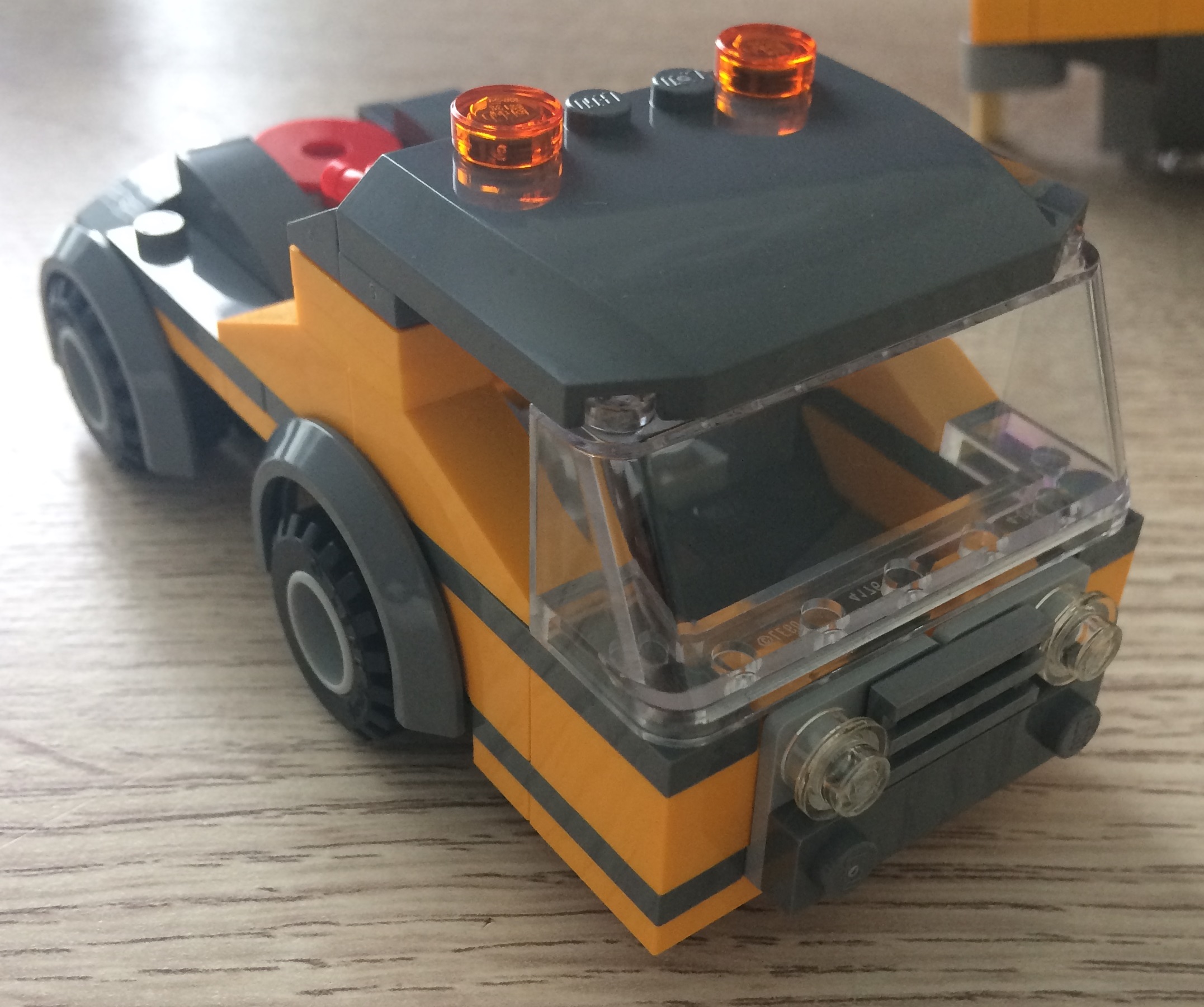On continue avec le camion citerne. C'est une belle réussite tant au niveau de la jouabilité qu'au niveau de la conception. Le bas de caisse est très bas tout comme la cabine. C'est encore simple à construire mais la couleur jaune apporte un coté punchy. Au niveau jouabilité , on tourne la molette sur le coté de la citerne et on se retrouve avec le cul du camion qui tombe et des flammes qui apparaissent. C'est top