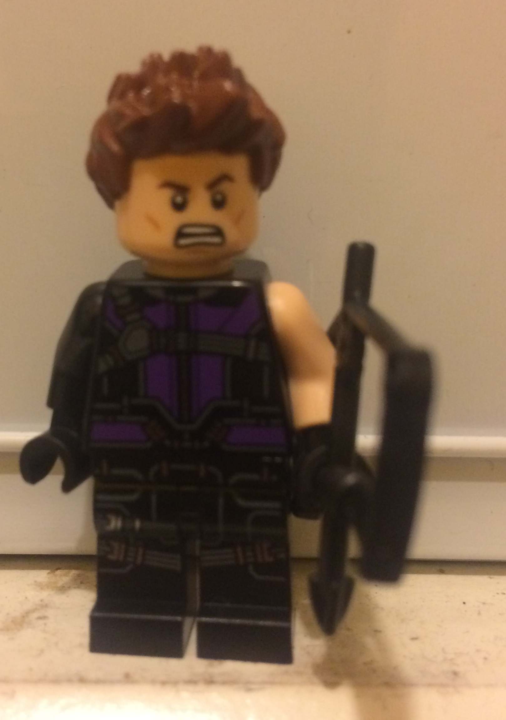 LEGO sait se renouveler et Hawkeye en est la preuve. Encore une nouvelle version bi-couleur de cette figurine dont la prédominance reste le noir. Aujourd'hui elle est associé au violet, couleur du personnage dans les comics. On a une jolie figurine , ou on peut constater de nombreuses poches type jean. Le carquois est encore présent dans le dos avec ses fléchettes et l'attache en triangle est présente à l'avant du torse. De plus, Lego a fait deux bras de couleurs différentes, c'est sympa. Enfin la figurine est la seule du set a disposer d'un double visage. C'est une belle réussite