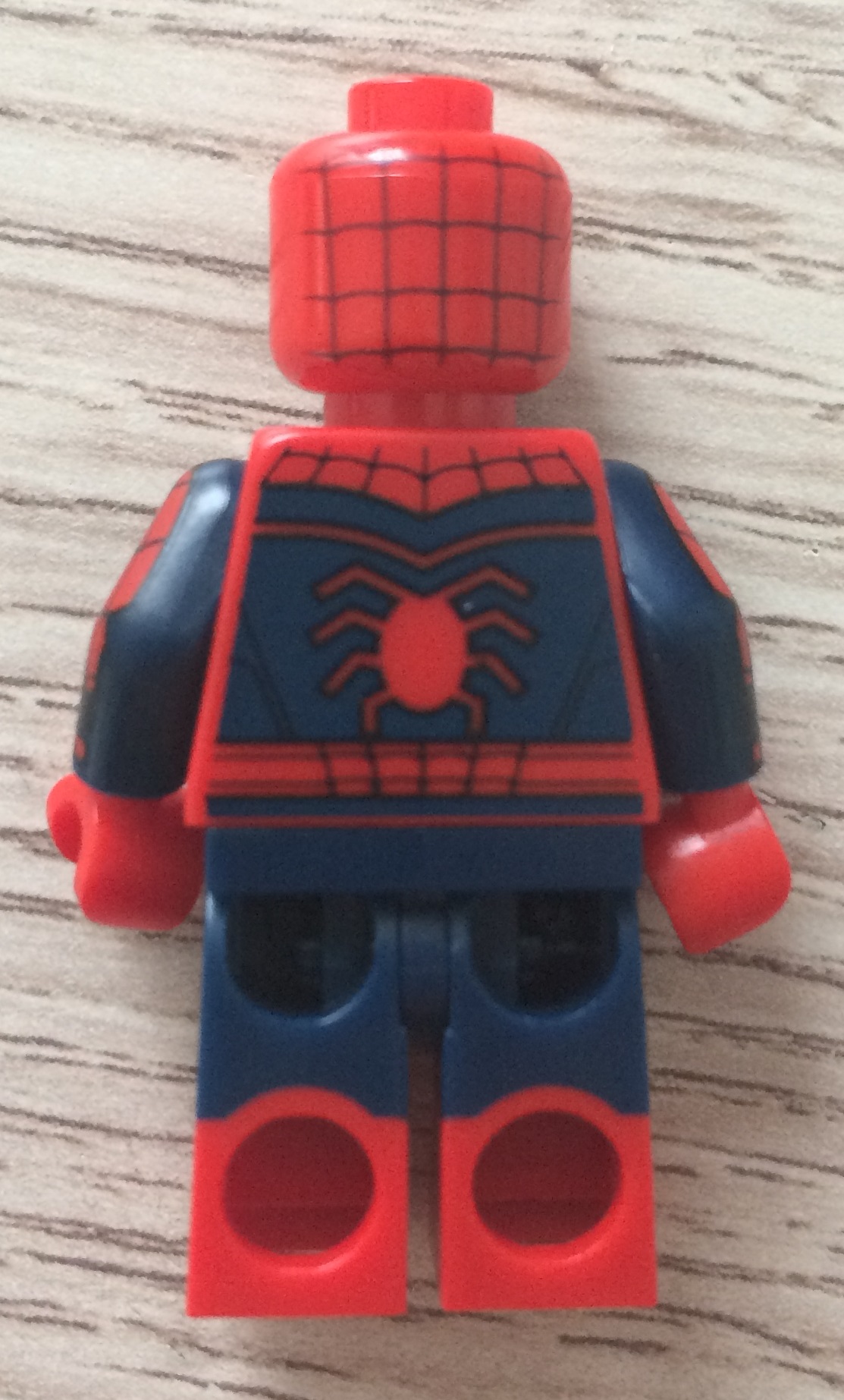 Et la c'est la CLAQUE. Après nous avoir sevré pendant 03 ans avec la même figurine , Lego a tapé fort sur cette figurine. On est passé d'une figurine d'enfant à une figurine mature , adulte. Elle présente une profondeur grâce au yeux assez surprenante. Le travail au niveau du torse quoique déjà vu est très bien réalisé. Cette araignée avec les fils et la couleur bleu jean du torse, c'est vraiment TOP TOP TOP. En plus, LEGO nous a sérigraphié les bras et les jambes et le dos certes simple finit le travail.