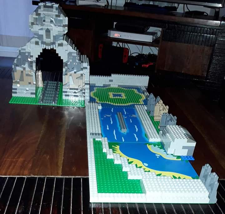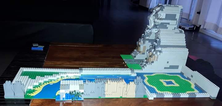 Le train sortant par la bouche ouverte. J'ai donc besoin de conseils ou d'aides pour m'aider à concrétiser ce projet, si possible à la prochaine Chti Brick. Je vais vois pour avoir des briques grises claires et foncées. Mais l'idée est de refaire une sorte de montagne qui partirait du cimetière. Dans la suite, rajouter 3 plaques 32x32 pour incorporer une cascade qui amènerait vers le old fisher shop avec une un marais pour la créature.