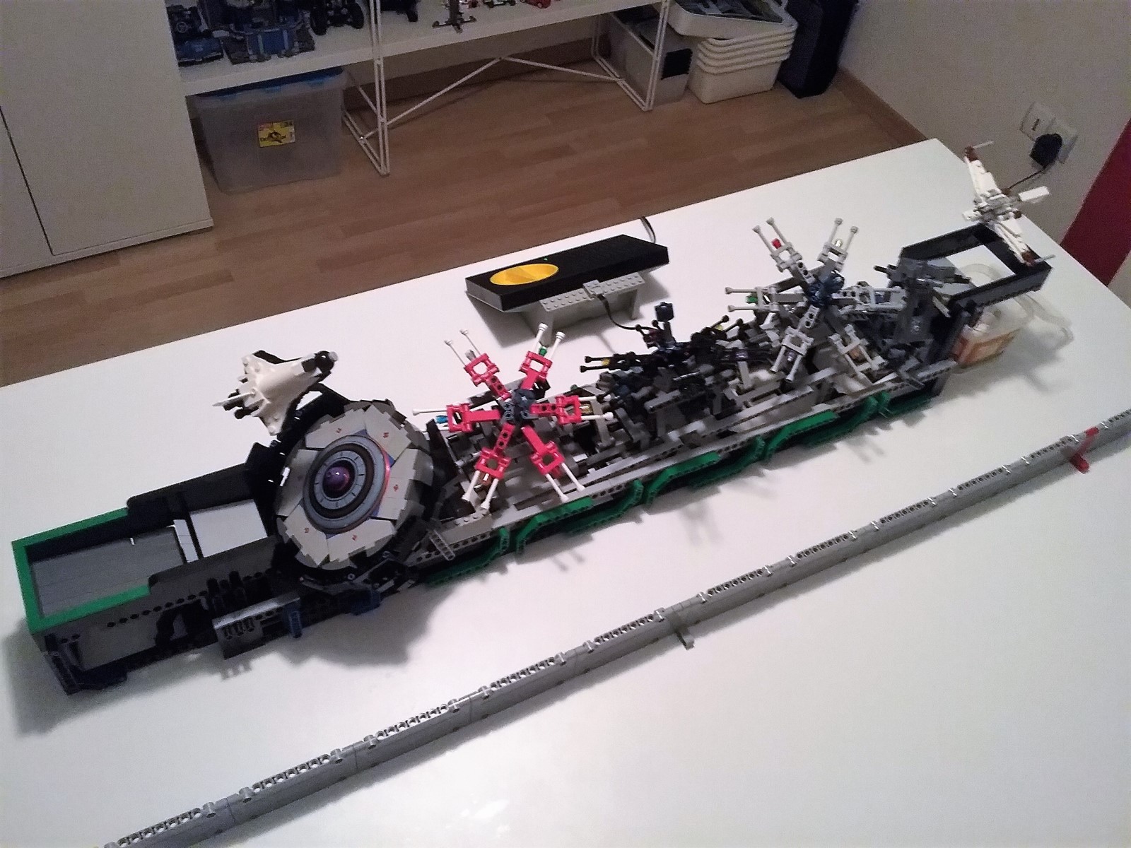 Ayant quitté l’association en tant qu’adhérent, cela ne m’empêche pas de me consacrer à ma passion favorite, l’assemblage de nos petites briques. Je vous présente donc un nouveau module GBB de Akiyuki planets 94 cm de longueur ( module amélioré pour une meilleure durabilité ) Il manque les trois demi-sphères pour le terminer mais cela n’altère pas son fonctionnement .