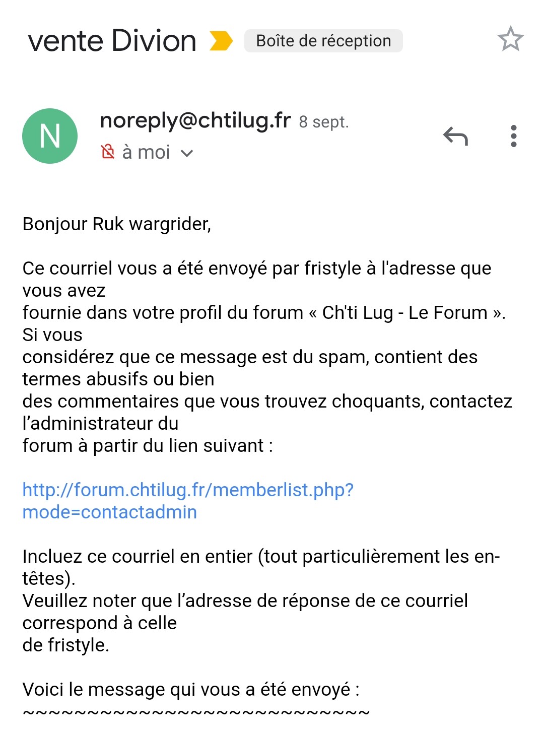 Effectivement ruk, c'est bien un email envoyé via le forum et non un mp
