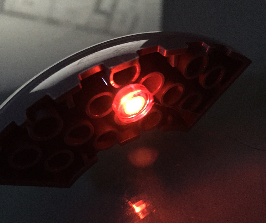 du coup petit test pour placer une led dans les round Tile rouge du cockpit. Ca rend.... super !