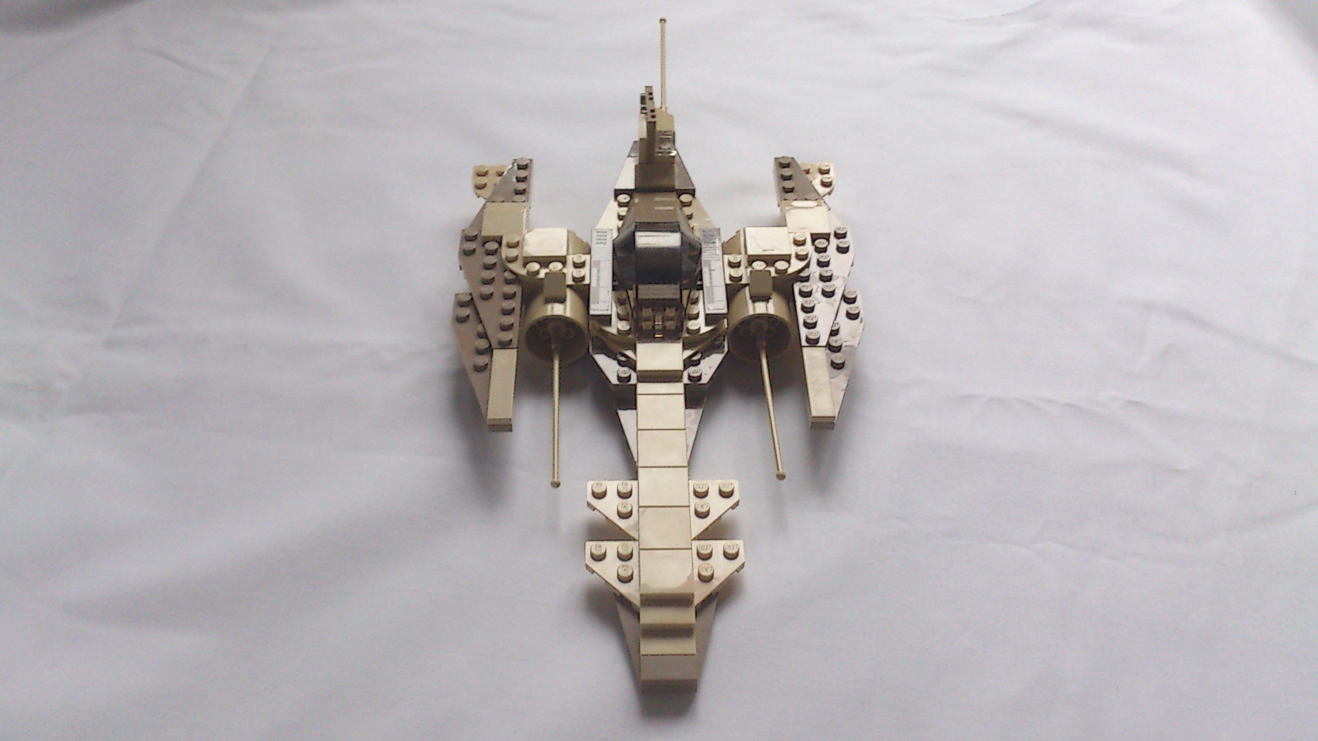 pas mal, comme le dit cruv, un peu plat, mais sympathique petit starfigther. Par contre, comme pour tombombadil, il faudra le modifier si tu veux que ce soit un vrai VV. Puisqu'il est alors sensé avoir deux "nez" à l'avant et pas 1 ;-)