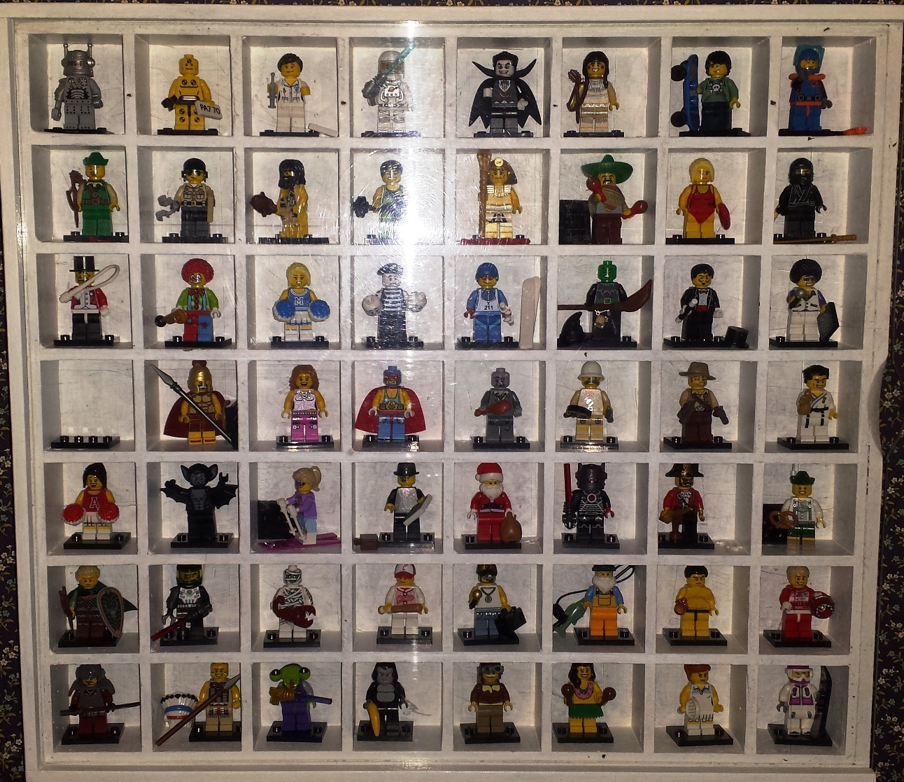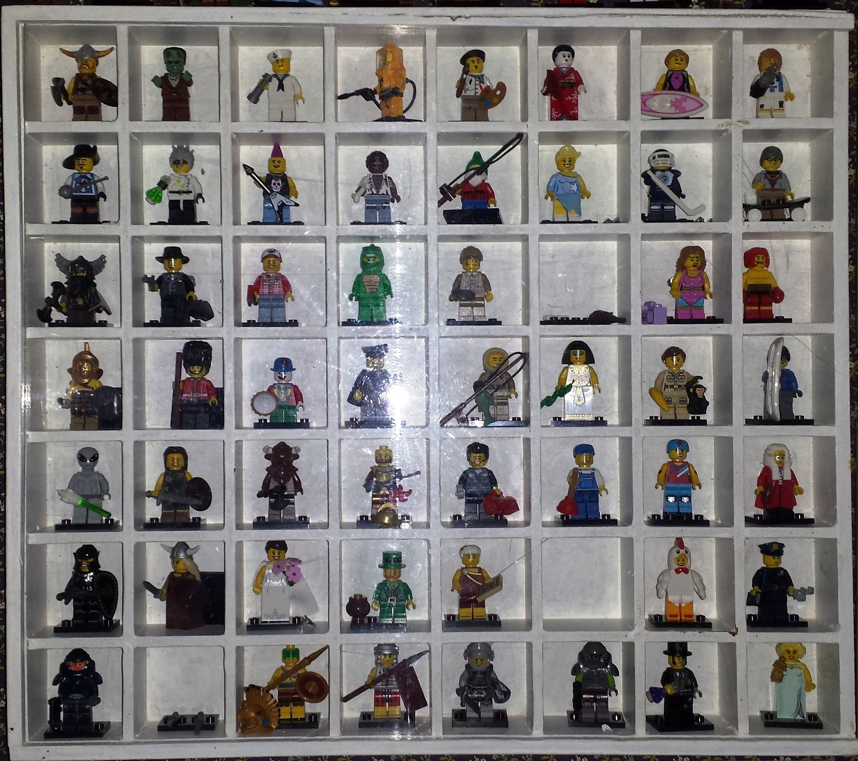 Bon, les cases faisant 40x40, certaines minifigs avec accessoires ne passent , elles doivent donc ôter leur couvre-chef...
