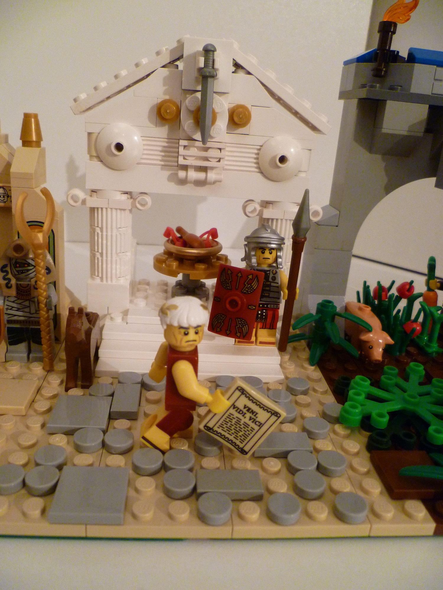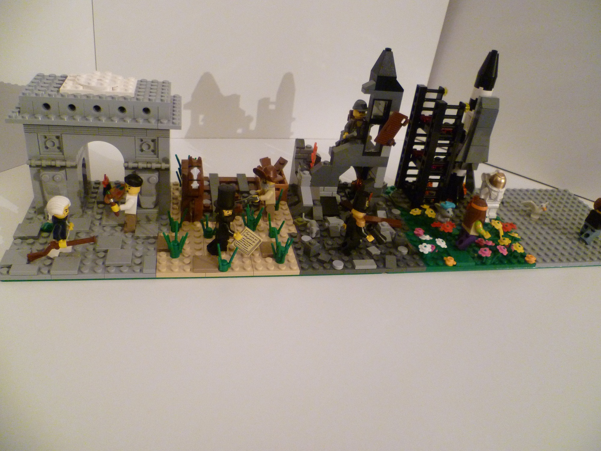 Dralnu fourni les décors, je fais l'animation, un petit truc sympa et facile et maluobi fait un cours d'histoire ludique en vidéo tout en recrutant de futurs afol! (mais ça faut pas le dire