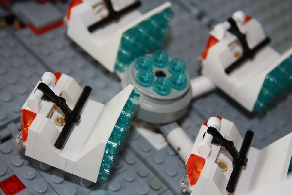Ici, s'agissant de Lego dont la peinture ne se raye pas, j'ai pris la liberté de stocker toutes les nacelles ensemble. Astuce utilisée sur les modèles plus récents, tels que le Shaker.