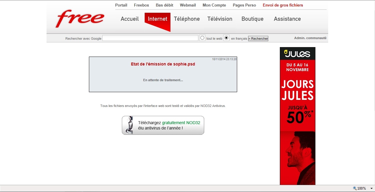 - NE FERMER PAS votre navigateur (IE/Chrome/FireFox…) tant que la barre mauve n’est pas complète et obtenir cette fenêtre :
