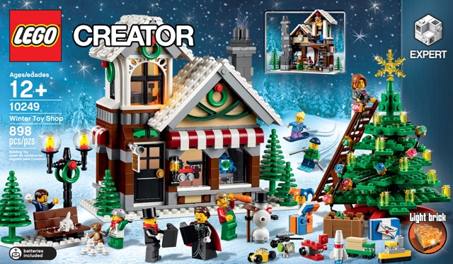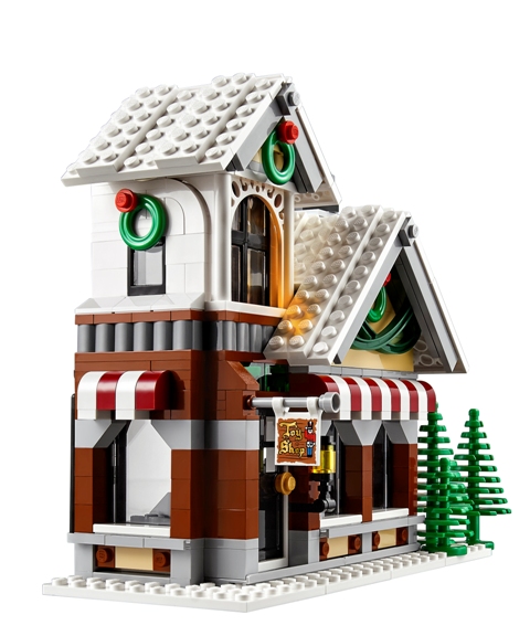 Bienvenue au magasin de jouets d'hiver! La saison des Fêtes est arrivée et le fabricant de jouets a fini ses dernières créations! A l'extérieur, les enfants font du ski et du snowboard, un bonhomme de neige fraîchement construit scintille avec la lumière brillante (brique lumineuse) provenant de la tour du magasin de jouets.