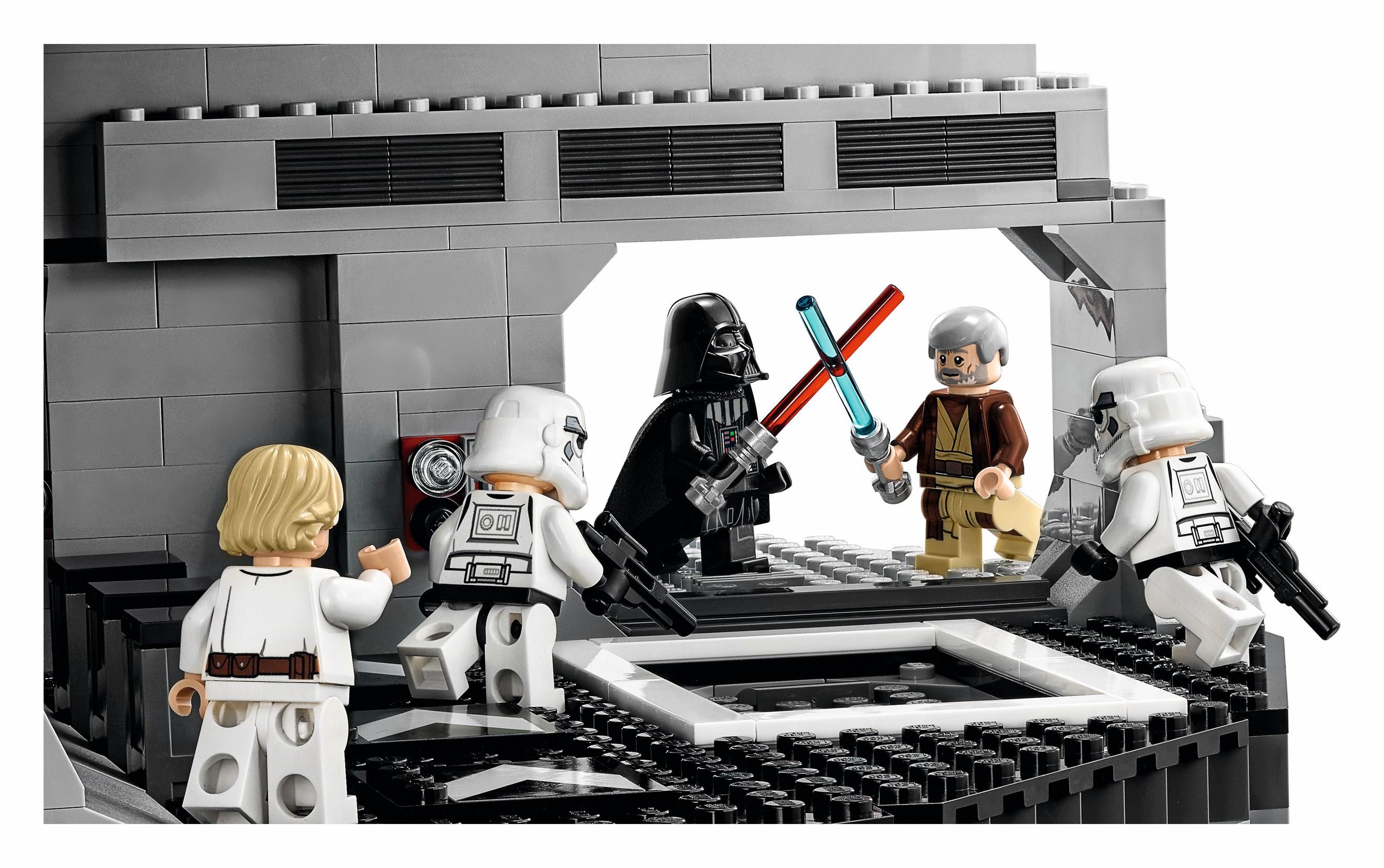 • Includes 23 minifigures: Grand Moff Tarkin, Darth Vader, Emperor Palpatine, Imperial Navy Officer, Imperial Officer, 2 Stormtroopers, 2 Death Star Troopers, 2 Emperor's Royal Guards, 2 Death Star Gunners, Death Star Droid, Obi-Wan Kenobi, Chewbacca, Princess Leia, C-3PO, Han Solo, Han Solo (disguise), Luke Skywalker (Tatooine), Luke Skywalker (disguise) and Luke Skywalker (final duel), plus R2-D2, an Imperial Astromech and a Dianoga trash compactor monster.