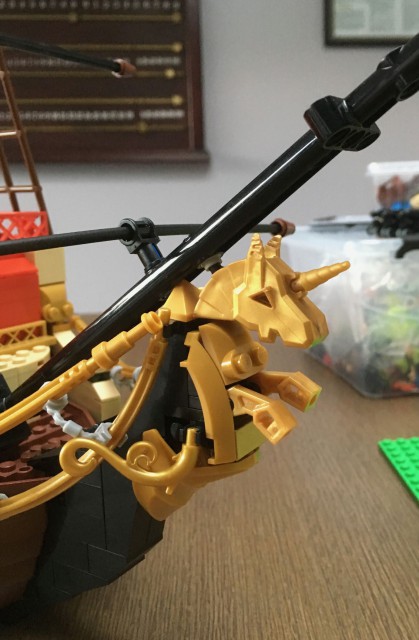 Bonjour a tous, Voici Mon nouveau Projet : "La Licorne" Bateau emblématique dans l'univers de Tintin, La Licorne est un trois-mâts fictif qui apparaît dans les albums "Le Secret de La Licorne" et dans "Le Trésor de Rackham le Rouge", respectivement publiés en 1943 et 1944, pendant la Seconde Guerre mondiale. Le vaisseau y joue un rôle prépondérant. Son nom provient de sa figure de proue ornée d'une licorne. Figure de Proue réalisé par Tonton lors d'une après-midi chez lui ou l'on as bien avancer le projet (Encore Merci pour ton aide, tes idées et tes pièces :taré1: )