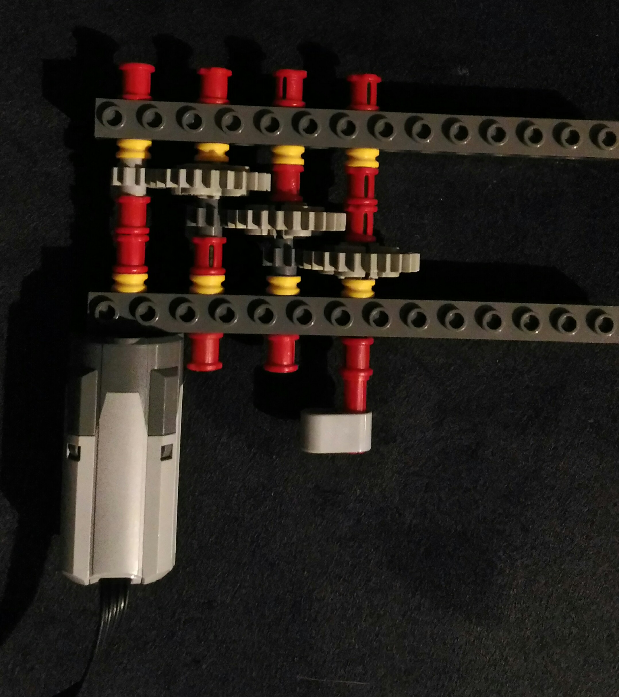Il me semble qu'il faut mettre une petite roue et une très grande a la suite pour diminuer la vitesse.