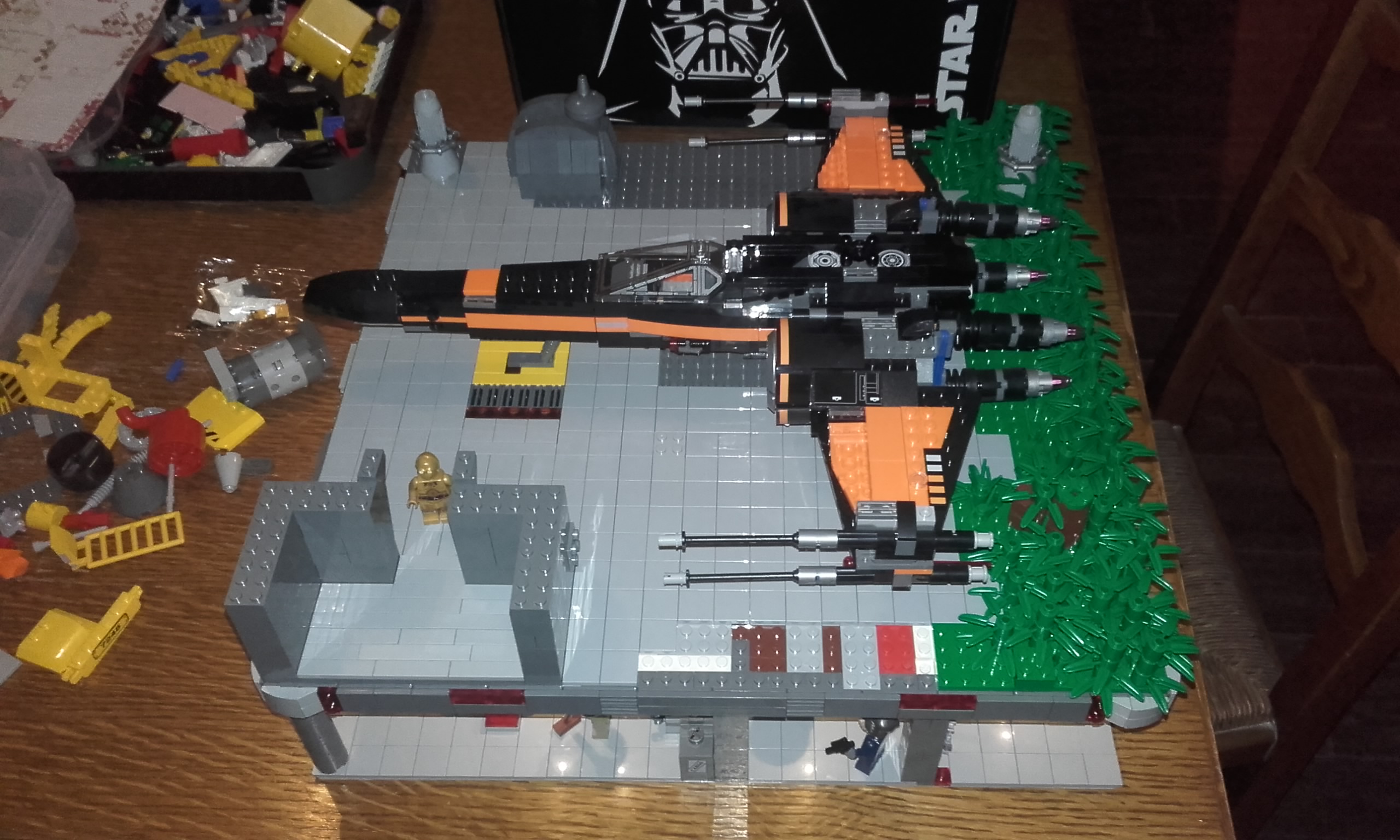 voici mon premier moc pour expose mon x wing le bas et presque fini encore quelque truc a voir et j attaque le haut ou sera pose le x wing