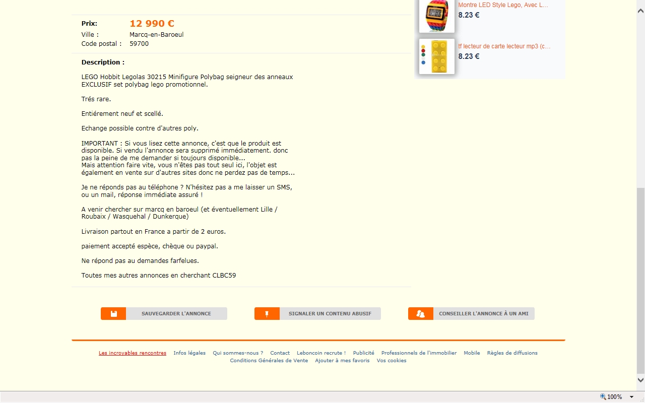 D'ailleurs, j'ai ce polybag, et il n'a rien de "très rare", la minifig est déjà présente sur le 79001, et les pièces sont... classiques...