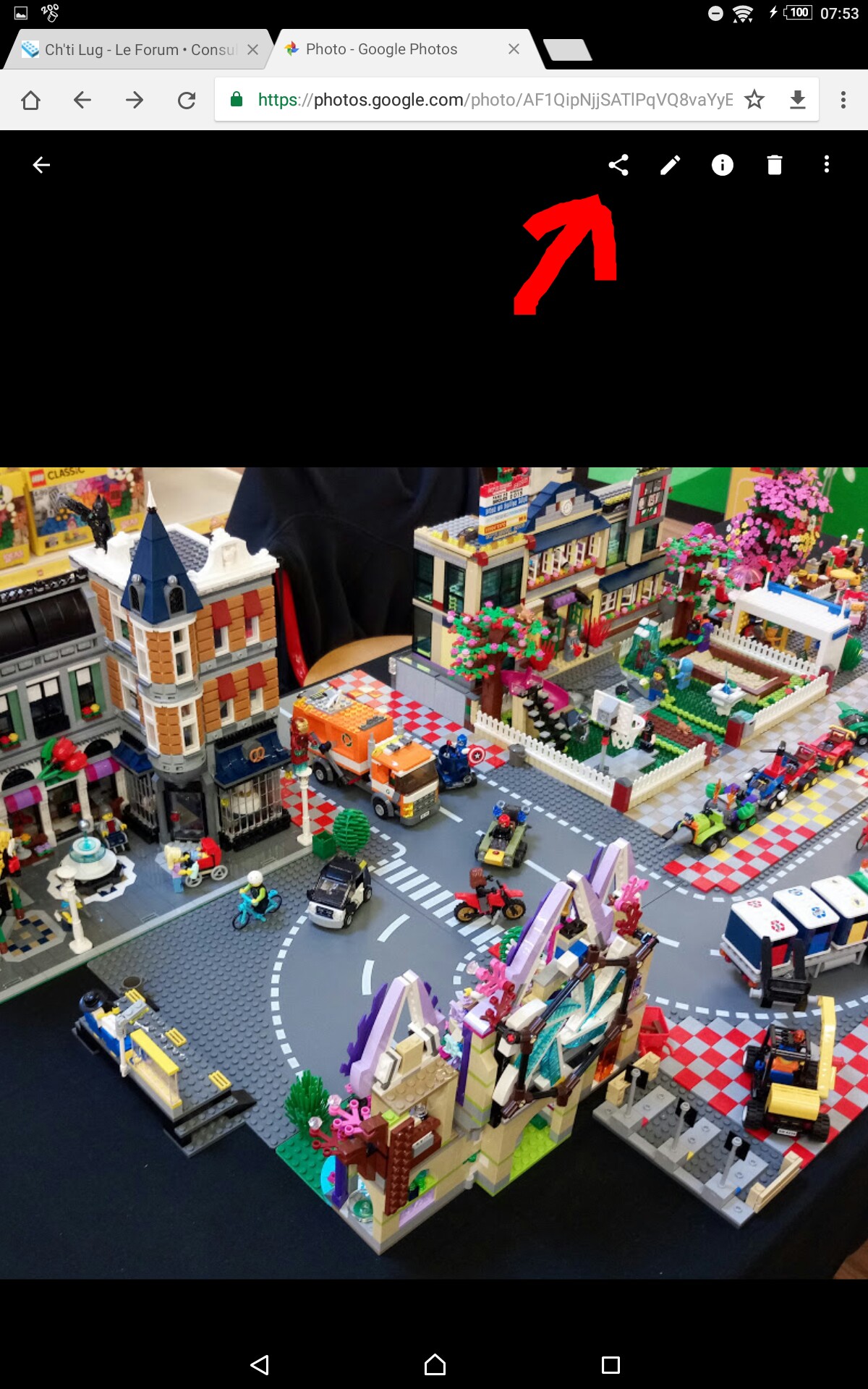 Sur Google photo tu as un le symbole partage