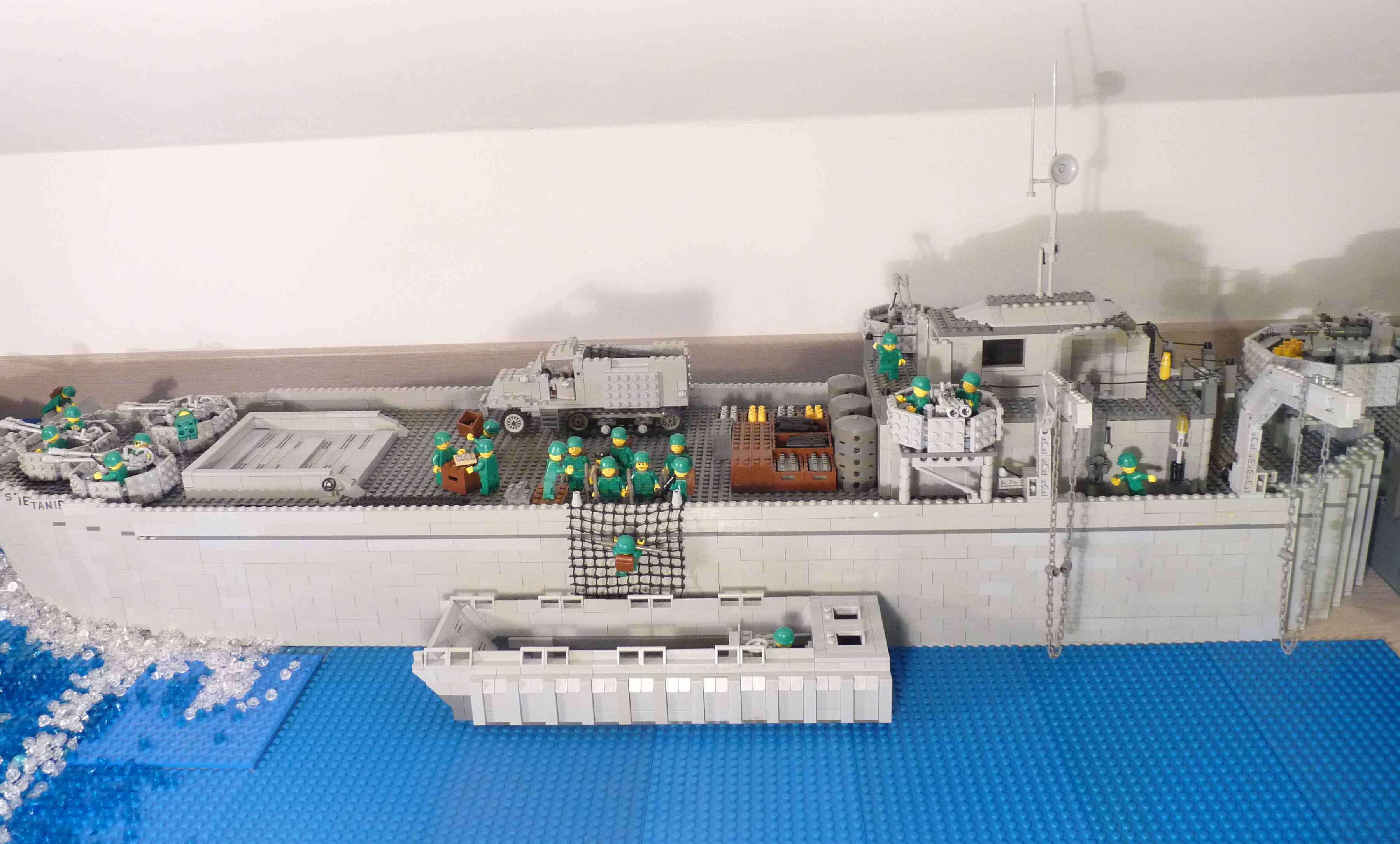 Voici mon navire venu compléter mon débarquement de Normandie , il est inspiré du Landing Ship Tank (LST) que j'ai nommé USS Liétanie ( c'est juste mon nom de famille j'avais pas trop d'idée ::d ) . Il est donc en continuité de ma plage et mesure environ 1m20 . Il manque encore une vingtaine de soldat et une barge de débarquement mais ça ne devrait pas tarder . Il reste encore à améliorer la cabine , le pont et le halftrack pour qu'il soit exposable . A vos commentaires !!