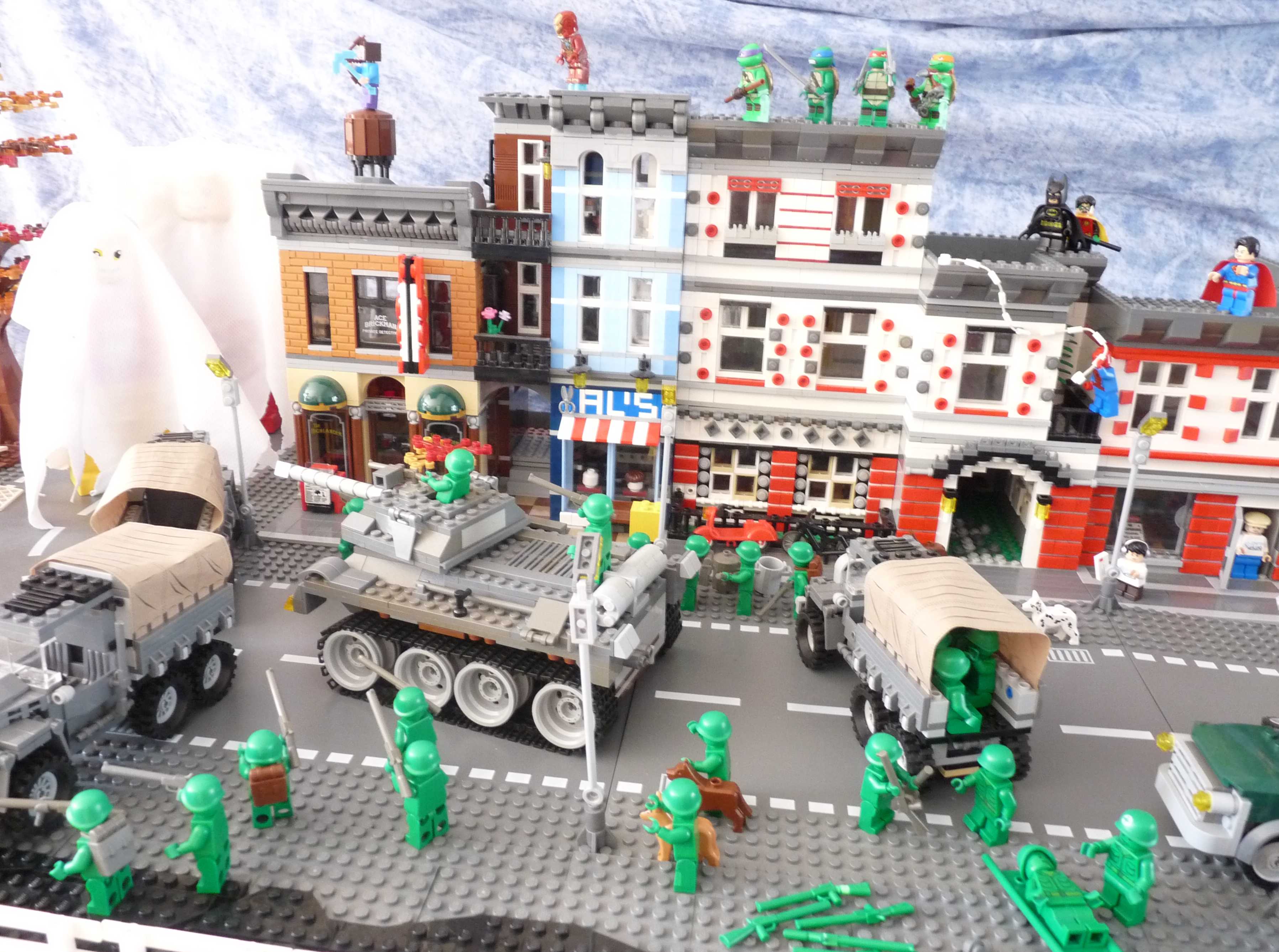 Avant d'accueillir un monorail et quelques vaisseaux pour nous replonger dans les space 80... pour la chti Brick III, je vous la présente sous sa version "ville envahie et secourue par de nombreux héros" qui sera exposée ce week à la convention Gameplay à Colfontaine.
