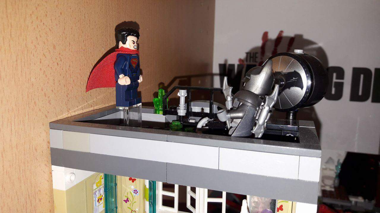 Tout petit petit petit moc, la fameuse bataille entre Batman et Superman, placé au sommet d'un immeuble!