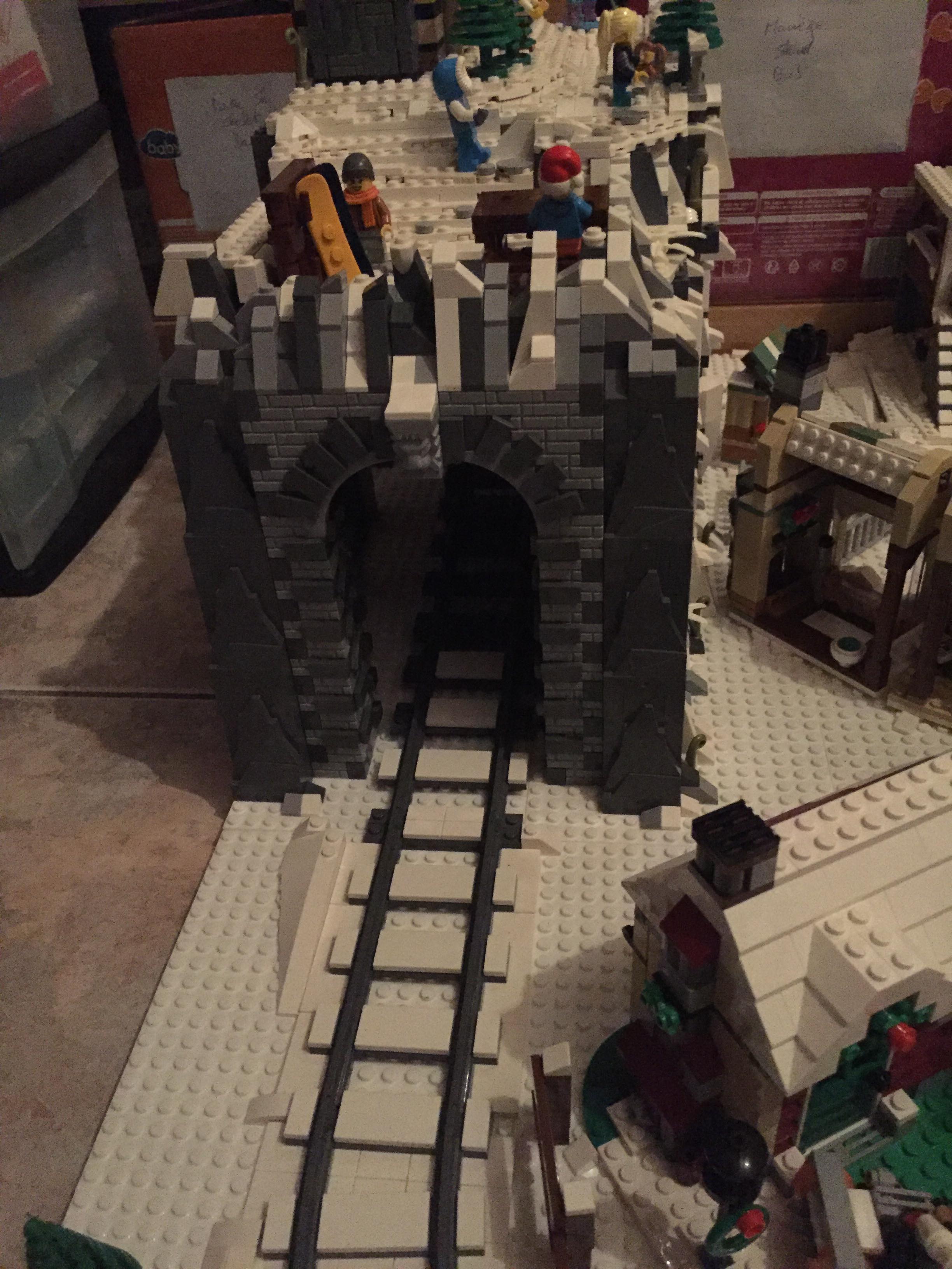 --> J'ai fais l'entrée de mon tunnel, la pente est amorcée afin de faire monter le train dans la montagne.