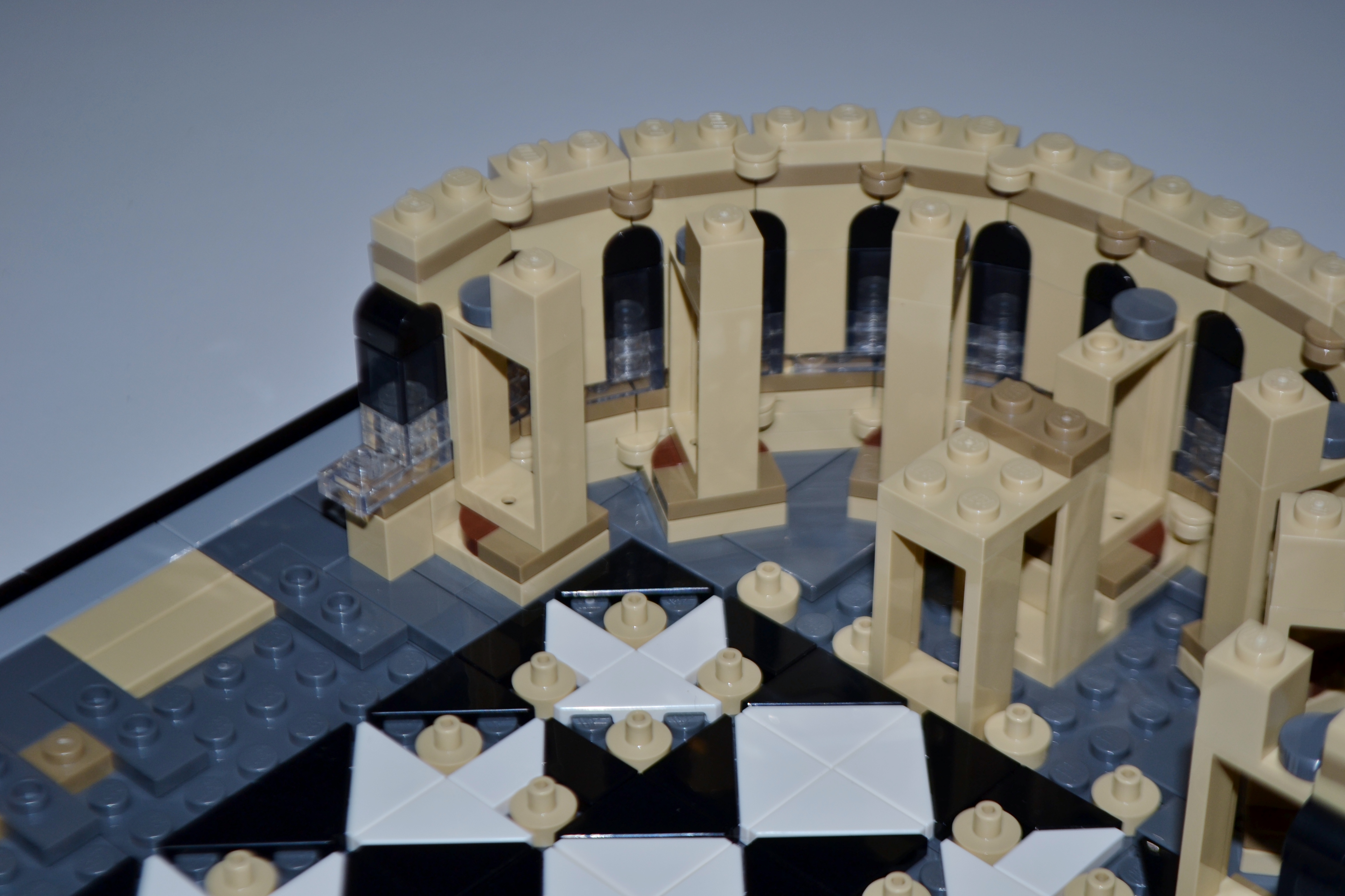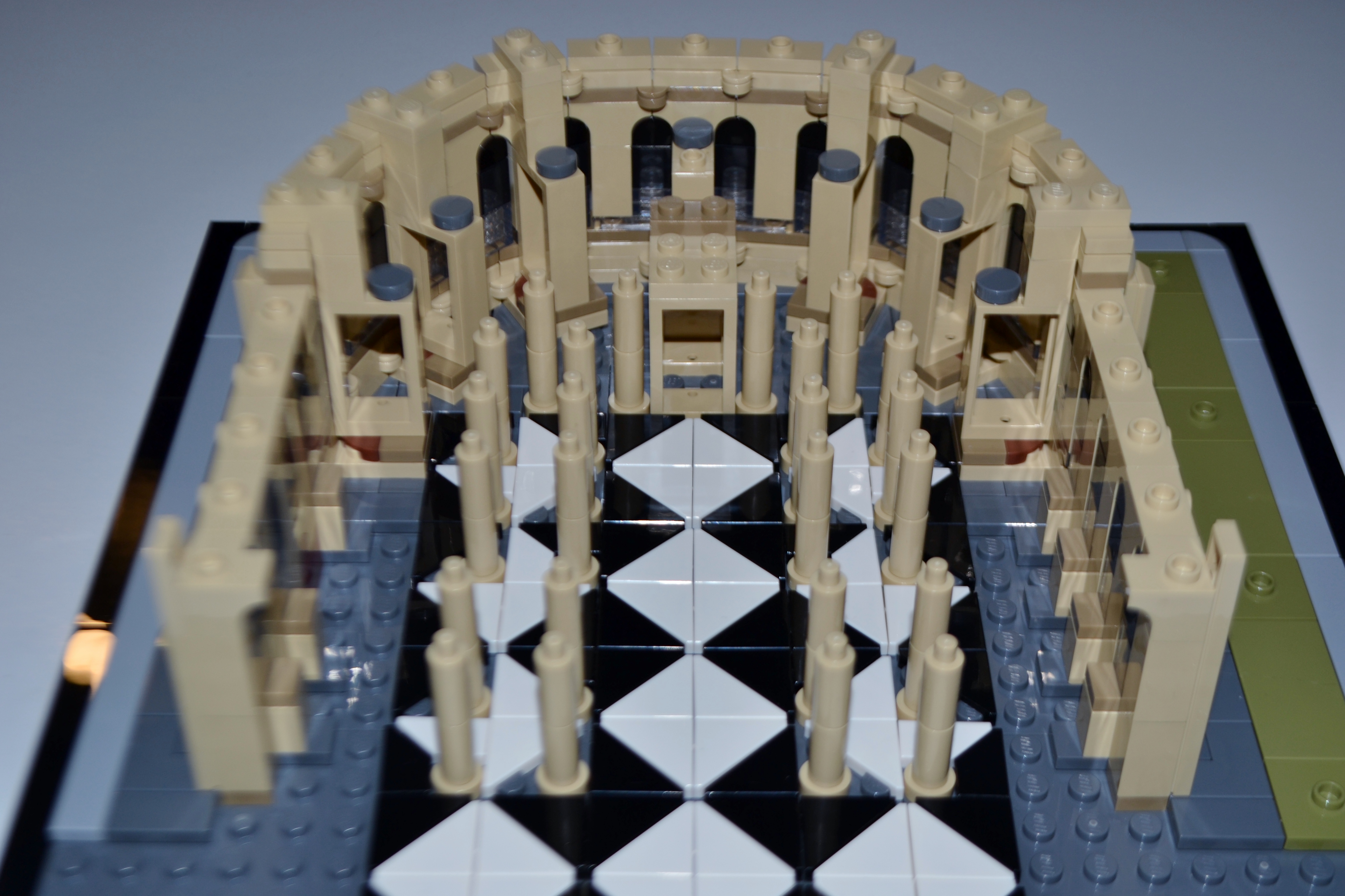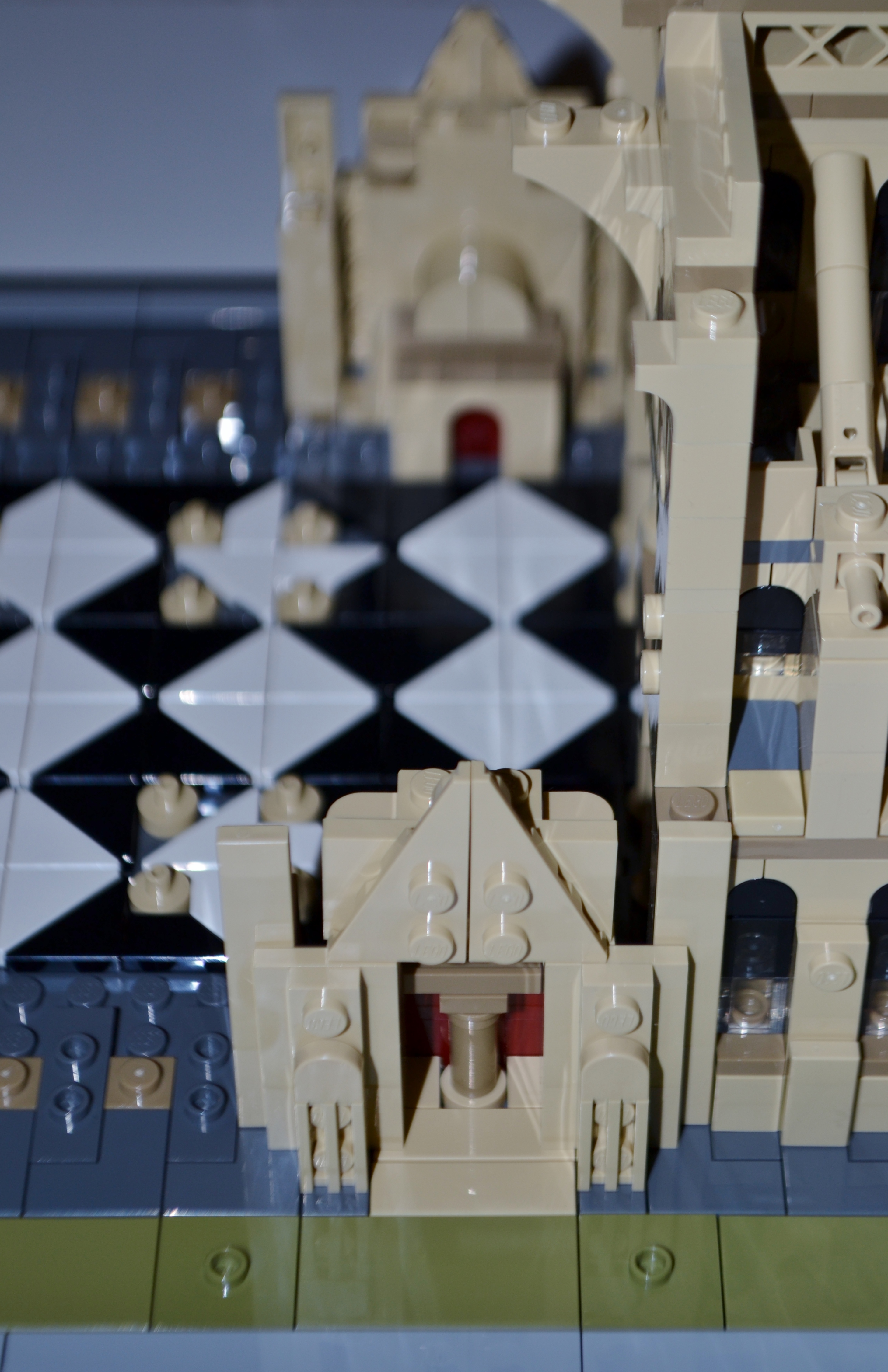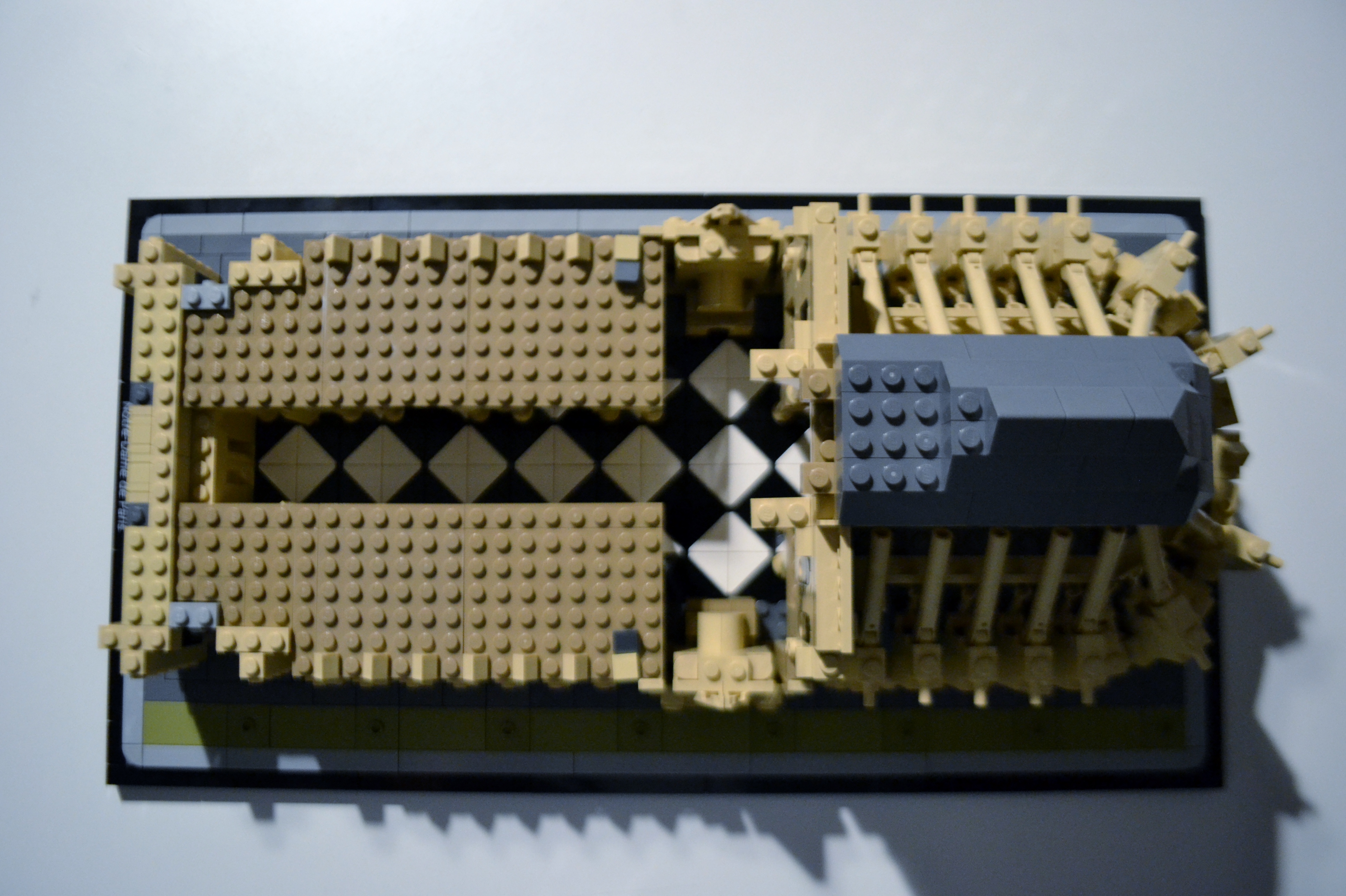 On peut enlever facilement la toiture afin de découvrir le dallage en damier. C'est le seul point négatif de cette construction c'est justement ce sol en damier. Je trouve que les carrés sont trop gros. Par la suite je changerai et je mettrai des pièces de 1x1 noires et blanches.