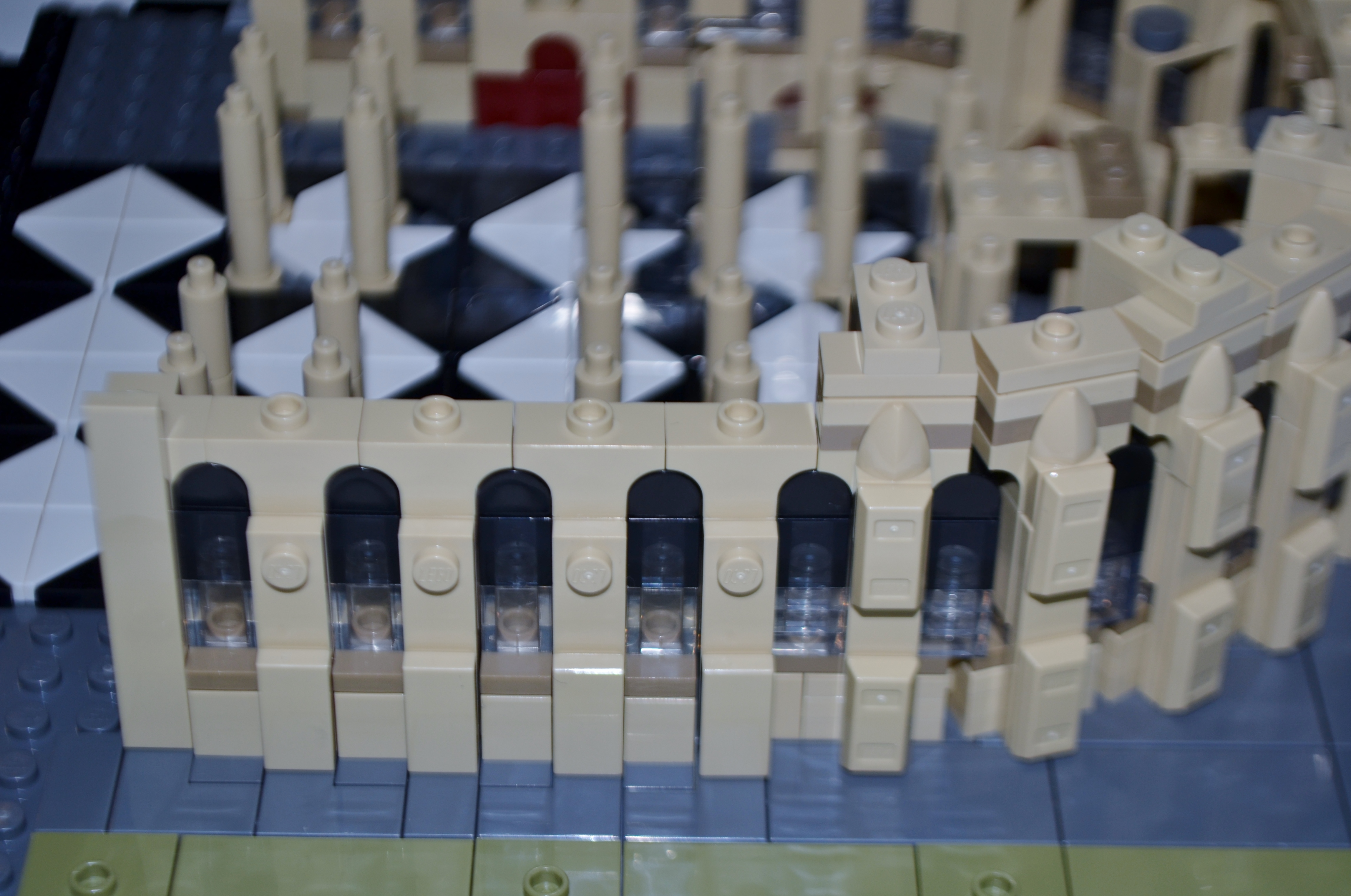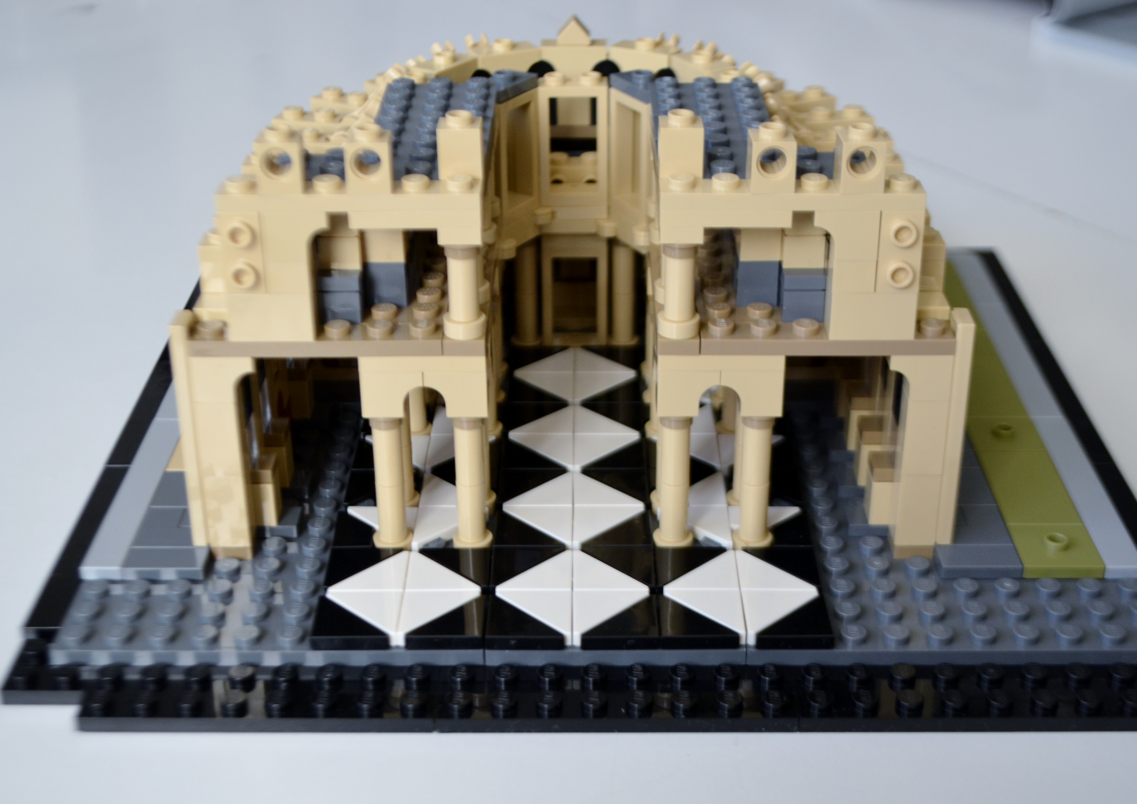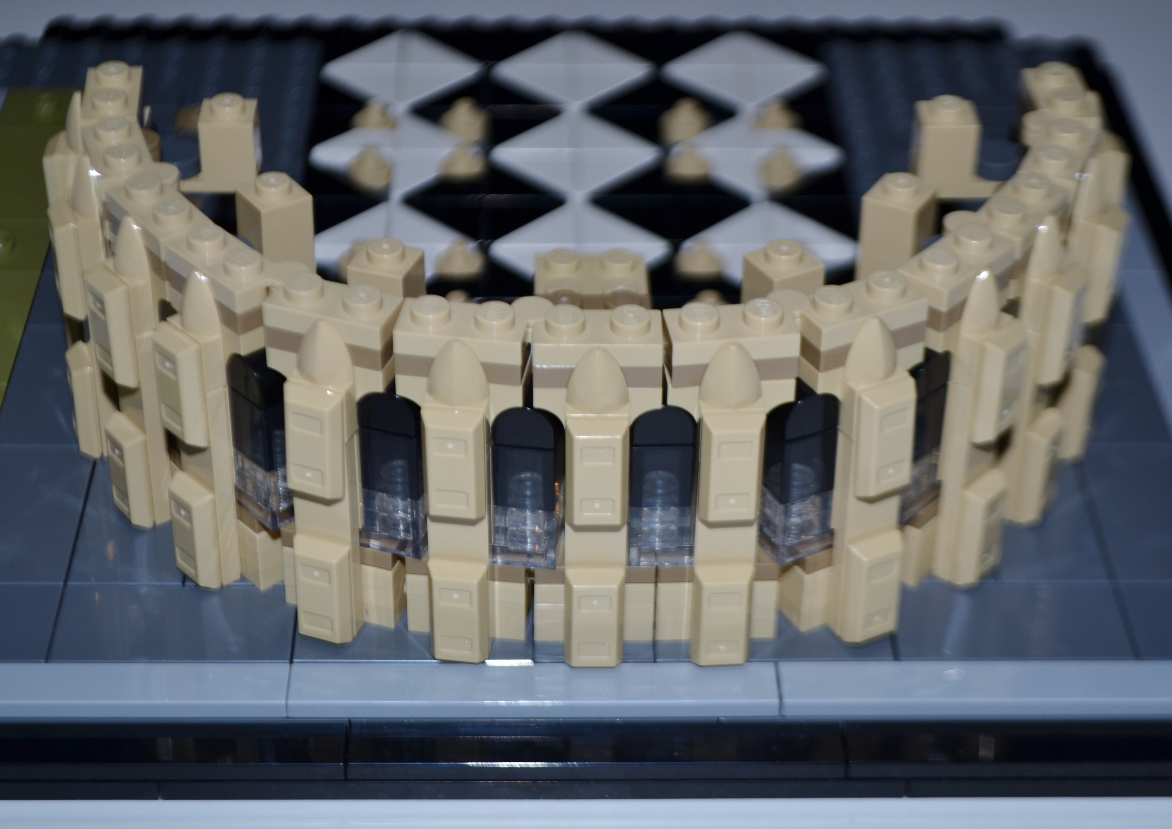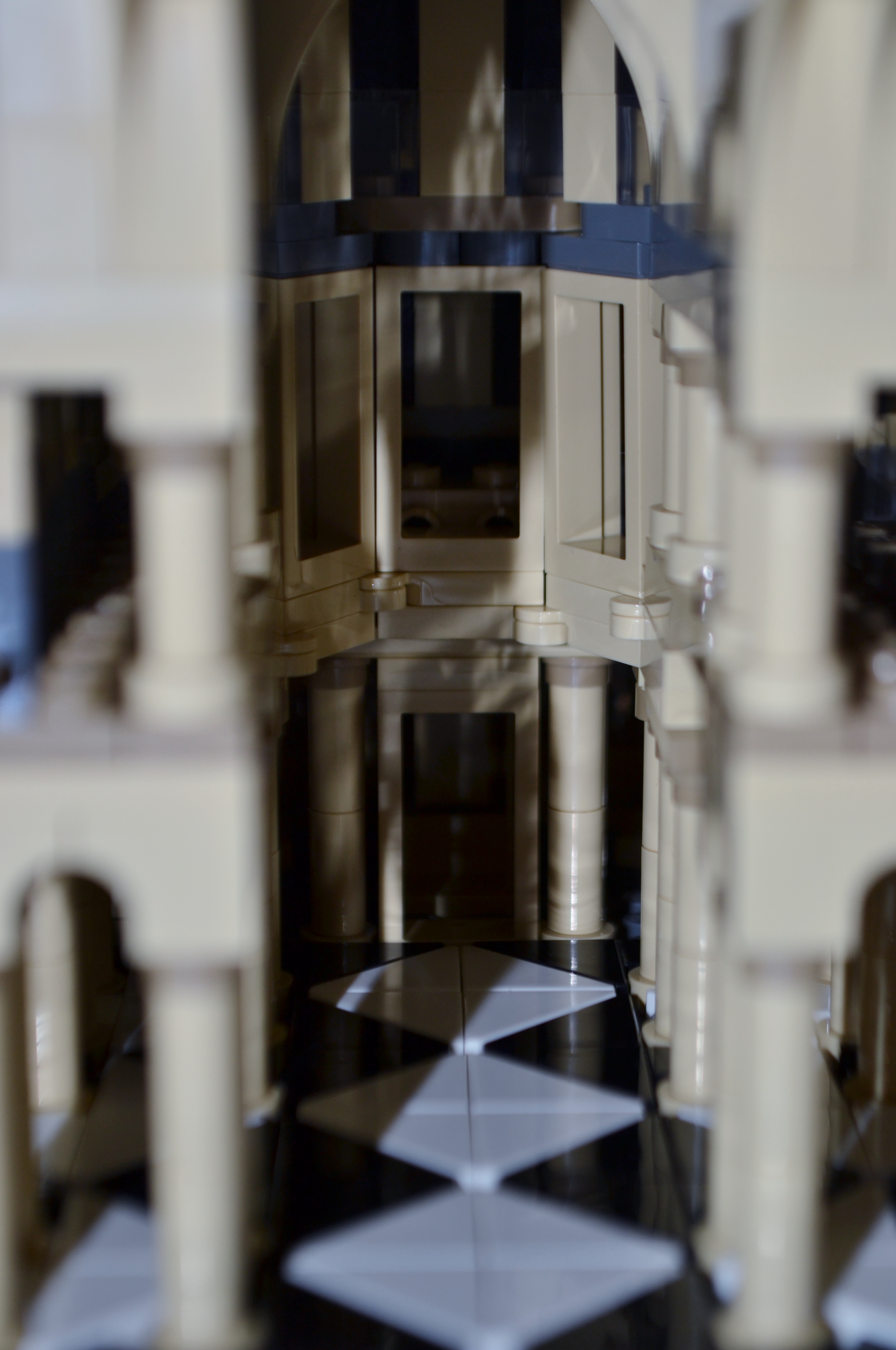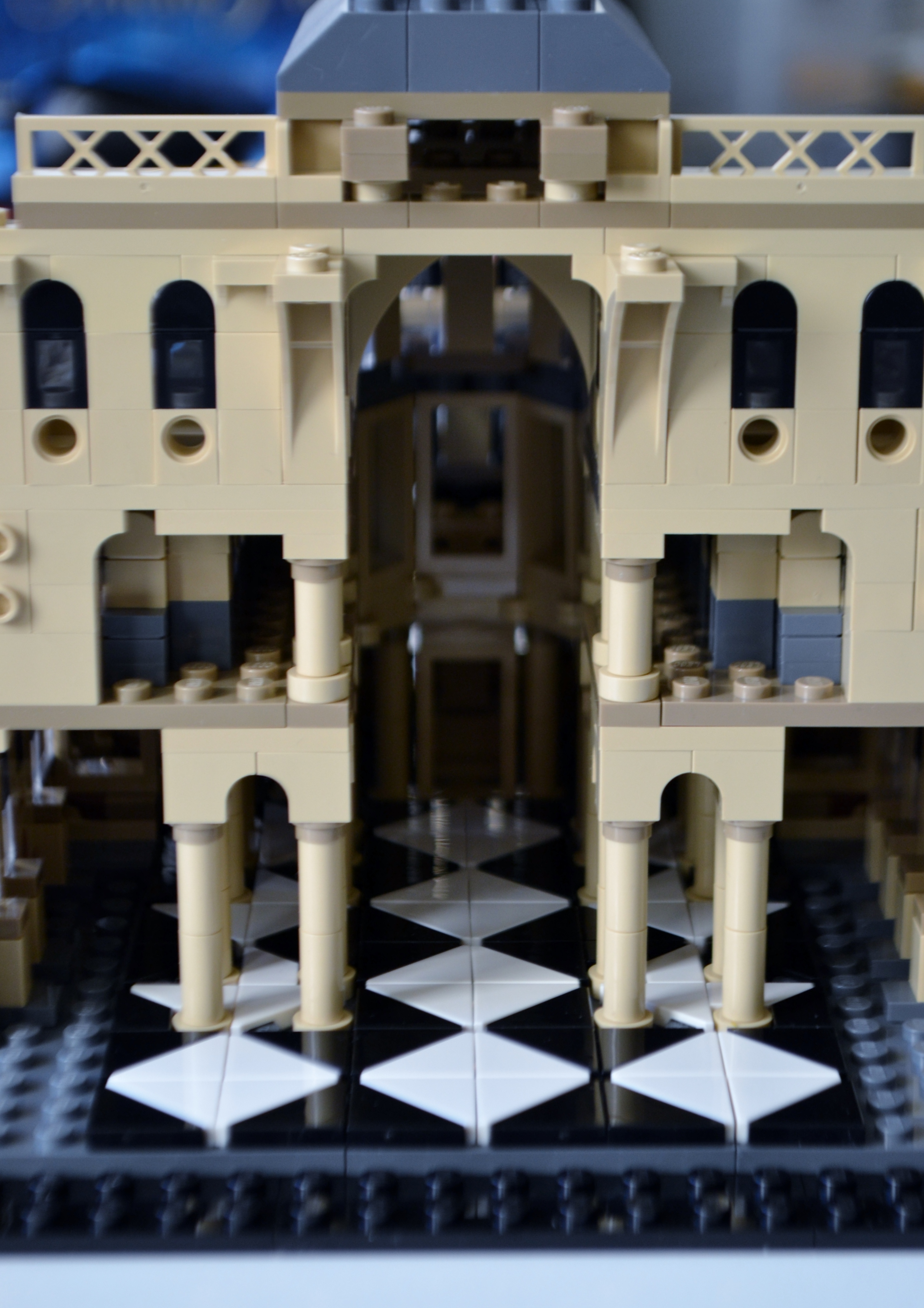 On peut enlever facilement la toiture afin de découvrir le dallage en damier. C'est le seul point négatif de cette construction c'est justement ce sol en damier. Je trouve que les carrés sont trop gros. Par la suite je changerai et je mettrai des pièces de 1x1 noires et blanches.