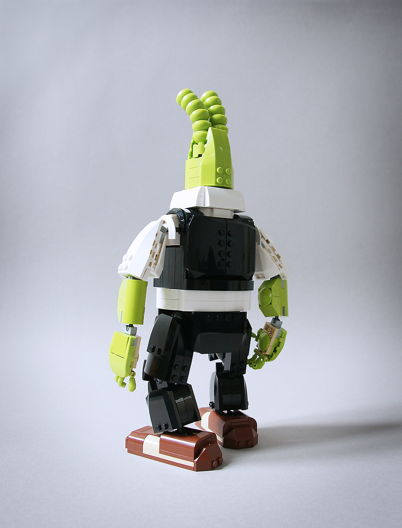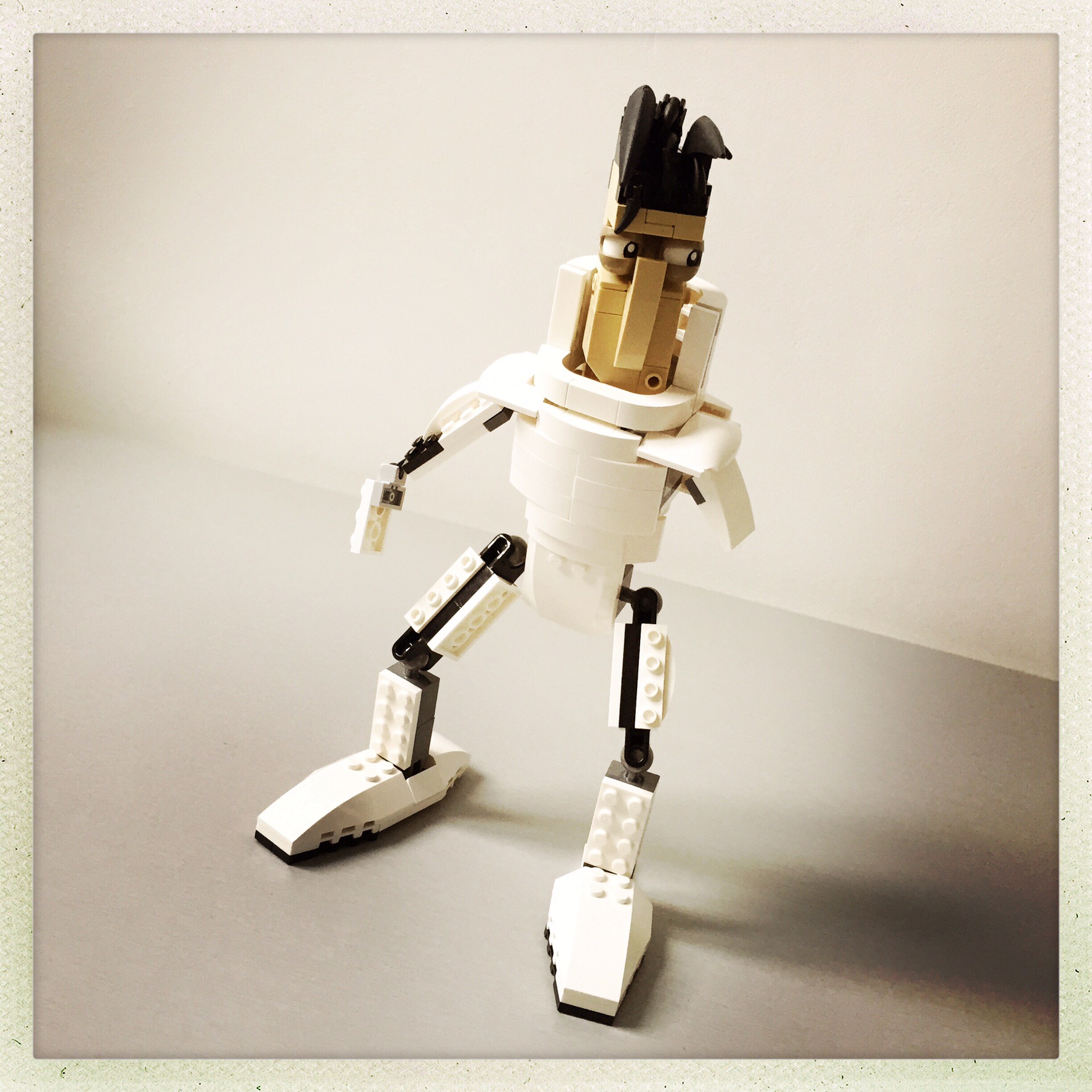 j'ai du faire quelques compromis tout de même au niveau de l'habillage (bras et jambes). les articulations ne devant pas être genée par une brique.